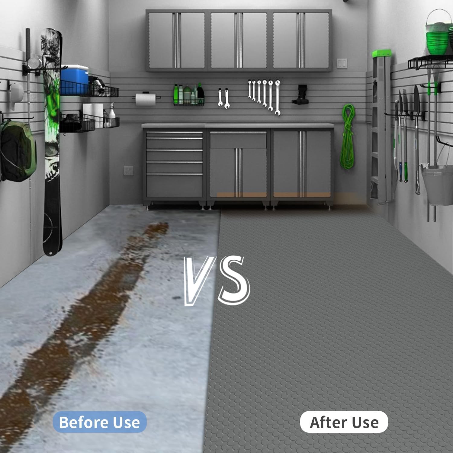 - HEAVY DUTY PROTECTOR MATS: Protect your garage floor from difficult to remove grease or rust stains, oil spills from your car, truck or motorcycle, tire skids, chemical drips, or other substances that may damage your floors.