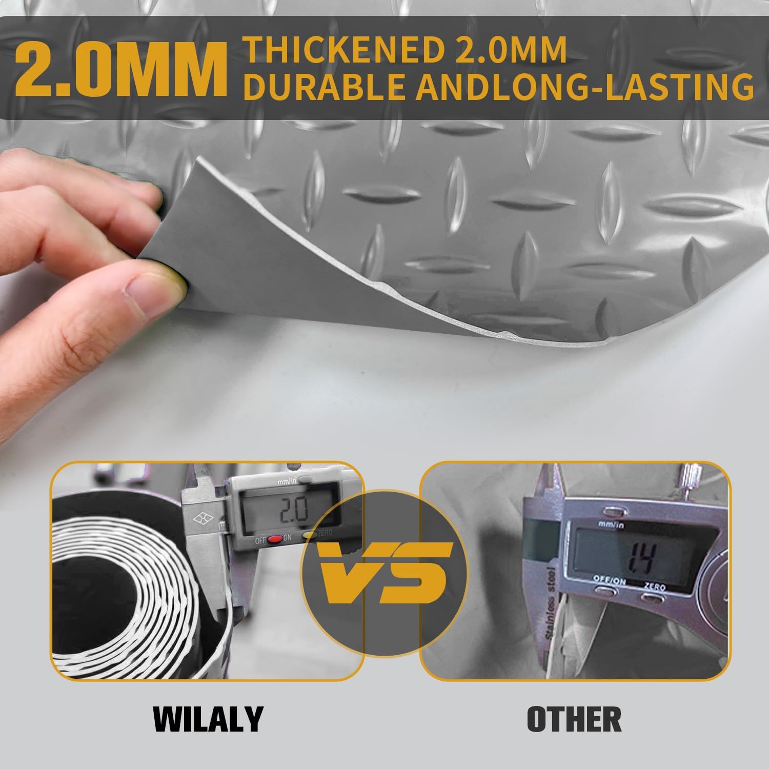 - DURABLE & SLIP-RESISTANT: Upgrade 2.0MM Sturdy Thicker PVC Material. Garage floor mats are with embossed diamond plate patterns which are totally anti-slip for safe in/out, greatly increasing the traction.