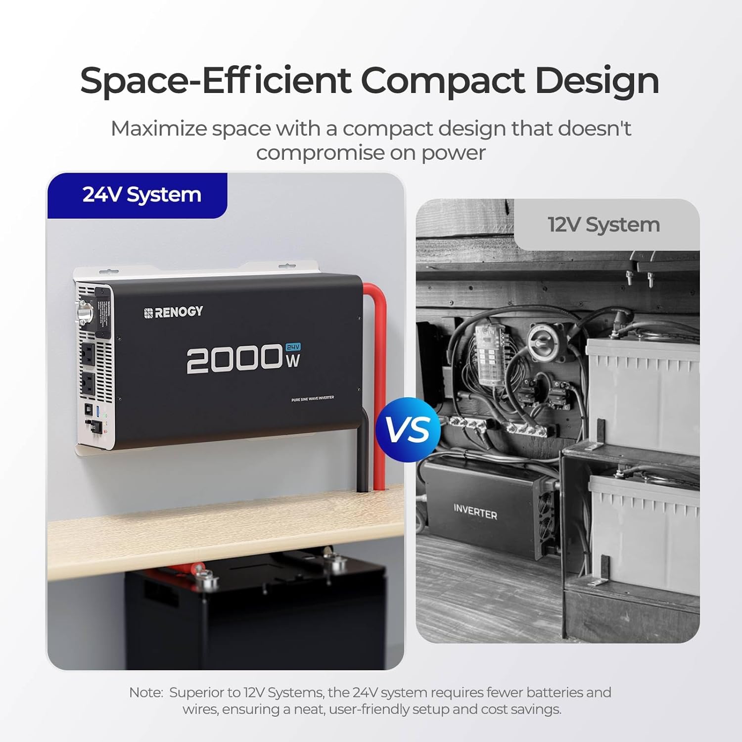 Renogy 2000W 24V Pure Sine Wave Inverter, 4000W Peak Power, 92% Energy Efficiency, with 2 AC Outputs, Remote Control, RV Truck Marine Camping