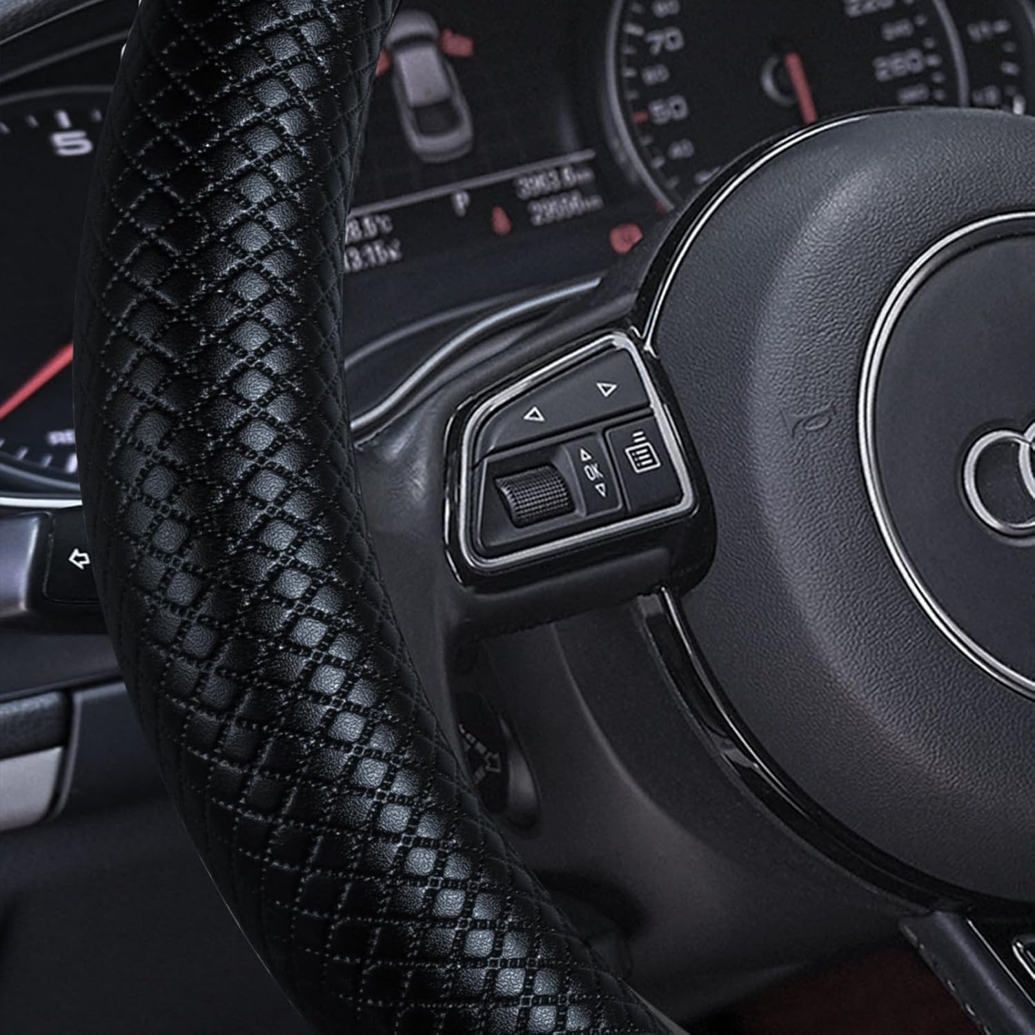 - UNIVERSAL FIT : Fits universal steering wheels with diameter 14 1/2 inch to 15 inch (37cm to 38cm) ,Measure steering wheel diameter first to ensure a snug fit.