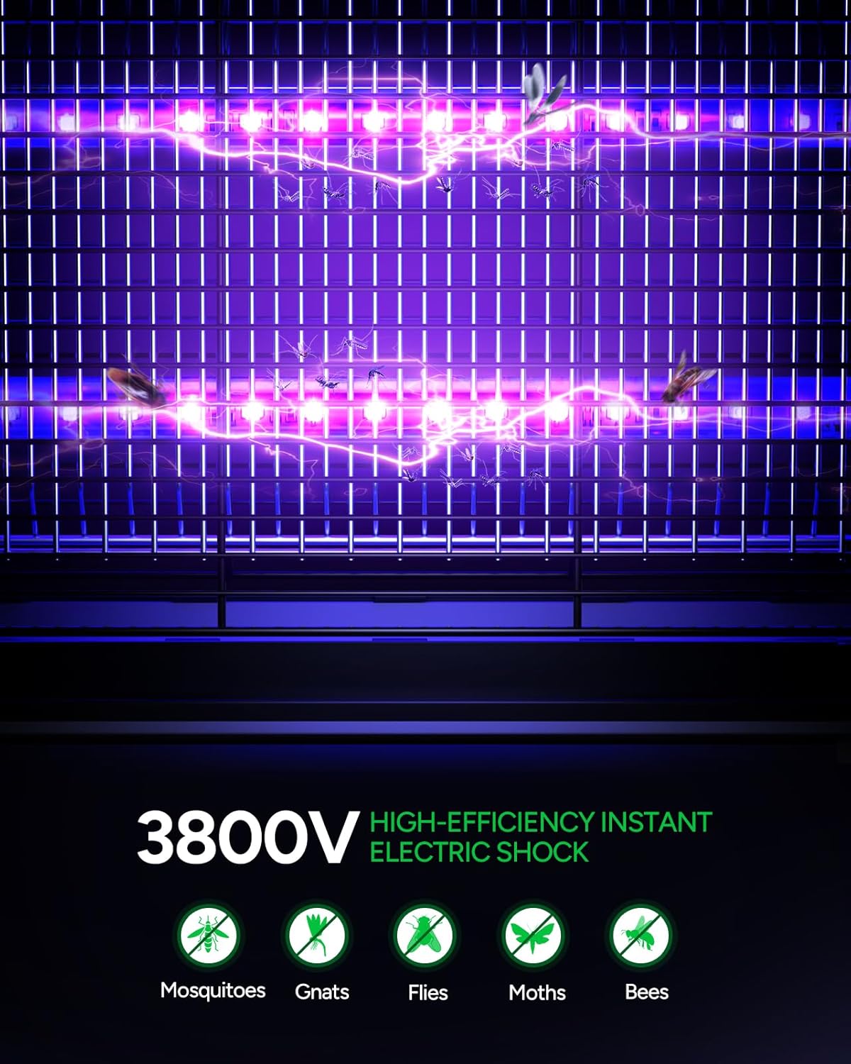 - Efficient and Safe: This electric bug zapper uses 3800V high-voltage physical electric shocks to kill bugs like mosquitoes, flies, moths, and gnats. It is equipped with a protective grill to avoid accidental contact by children and pets, making it a reliable bug-killing solution for indoor family use.