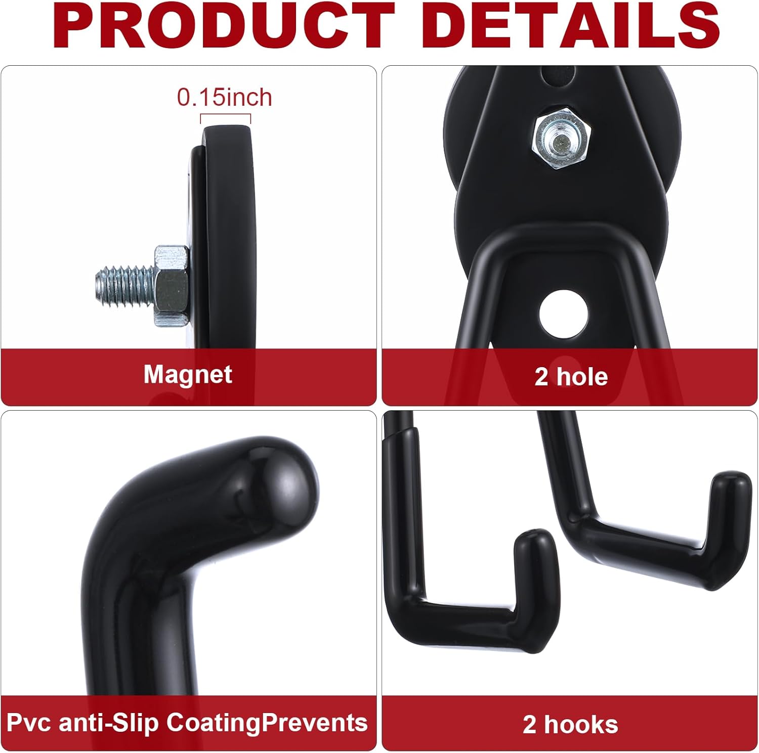 - Easy to Install: no need to use any tools, and the magnetic hooks will not break the surface; The black magnetic hooks can be placed directly on the metal surface; Please note that the thickness of the sucked iron sheet must be thicker than 0.047 inch/ 1.2 mm; Or else the magnetic hook will slide off