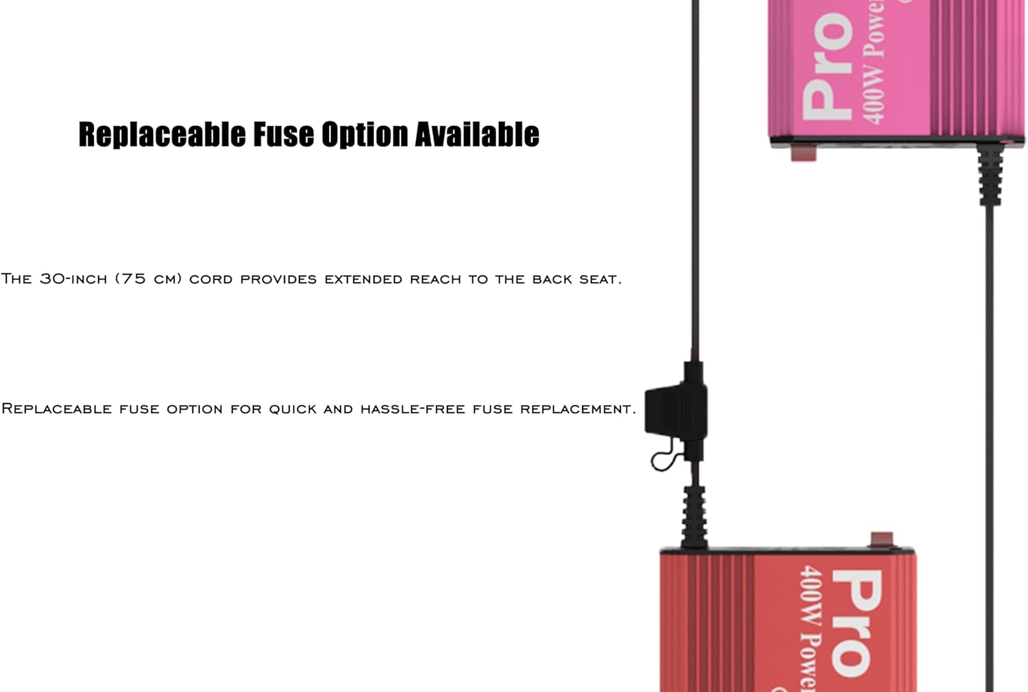 - 【Package Contents】: 1 x Power Inverter with Cigarette Lighter Connector & 2 x Spare Fuse