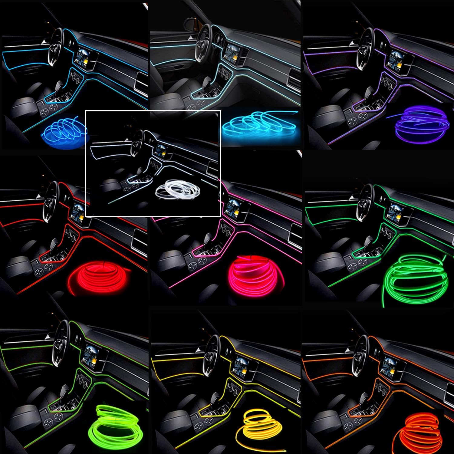 - [Flexible and Cuttable EL Wire] The automotive EL wire is flexible and thin, allowing it to be bent into any shape and cut to any desired length.