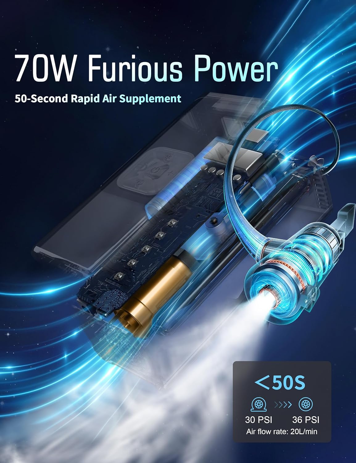 - 1 MINUTE FAST INFLATION: Equipped with a quiet yet high-powered motor, delivering up to 160 PSI to quickly handle flat tires and get you back on the road in no time