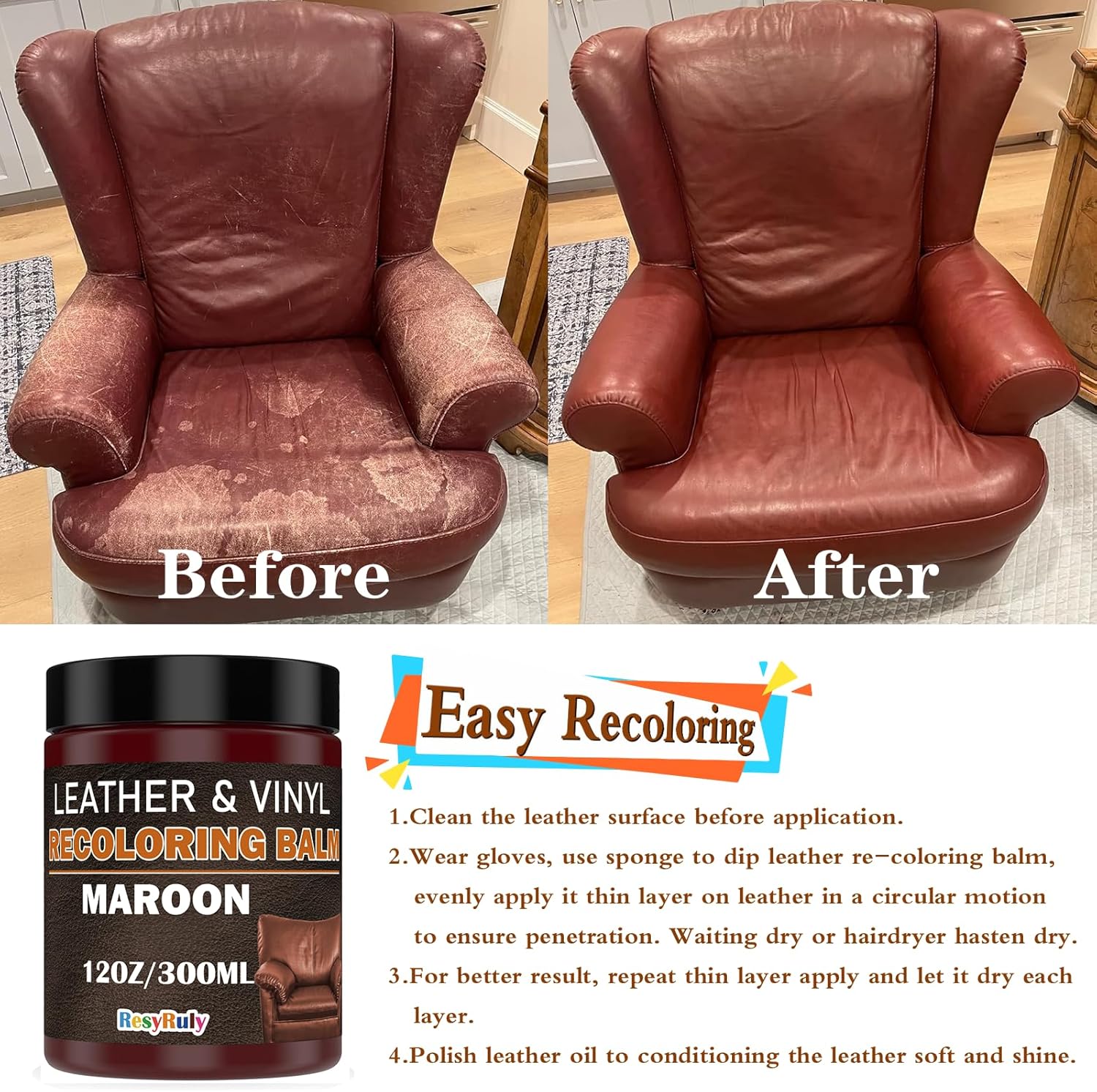 - Maroon Leather Dye Aged Leather: Leather furniture with resyruly leather recoloring balm can repair crack stain scratches or fade scuff leather couch, giving it a refreshed and vibrant look.