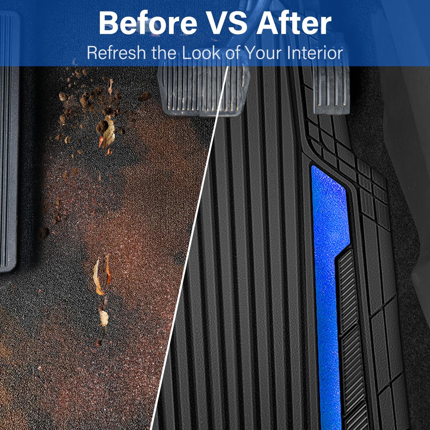 - 【Premium Rubber Material】This anodized two tone all weather car floor mats are designed with premium quality rubber and aluminum film splicing, combining durability and fashion, providing your car with long-lasting protection and enhancing the aesthetics of your car.