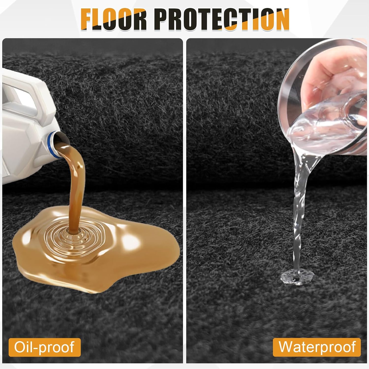 - Premium Protection: The Garage Floor Mat provids robust protection against oils, fluids, and environmental elements. Its durable, felt surface effectively absorbs spills, while the waterproof backing prevents any leaks, making it perfect for any garage setting.