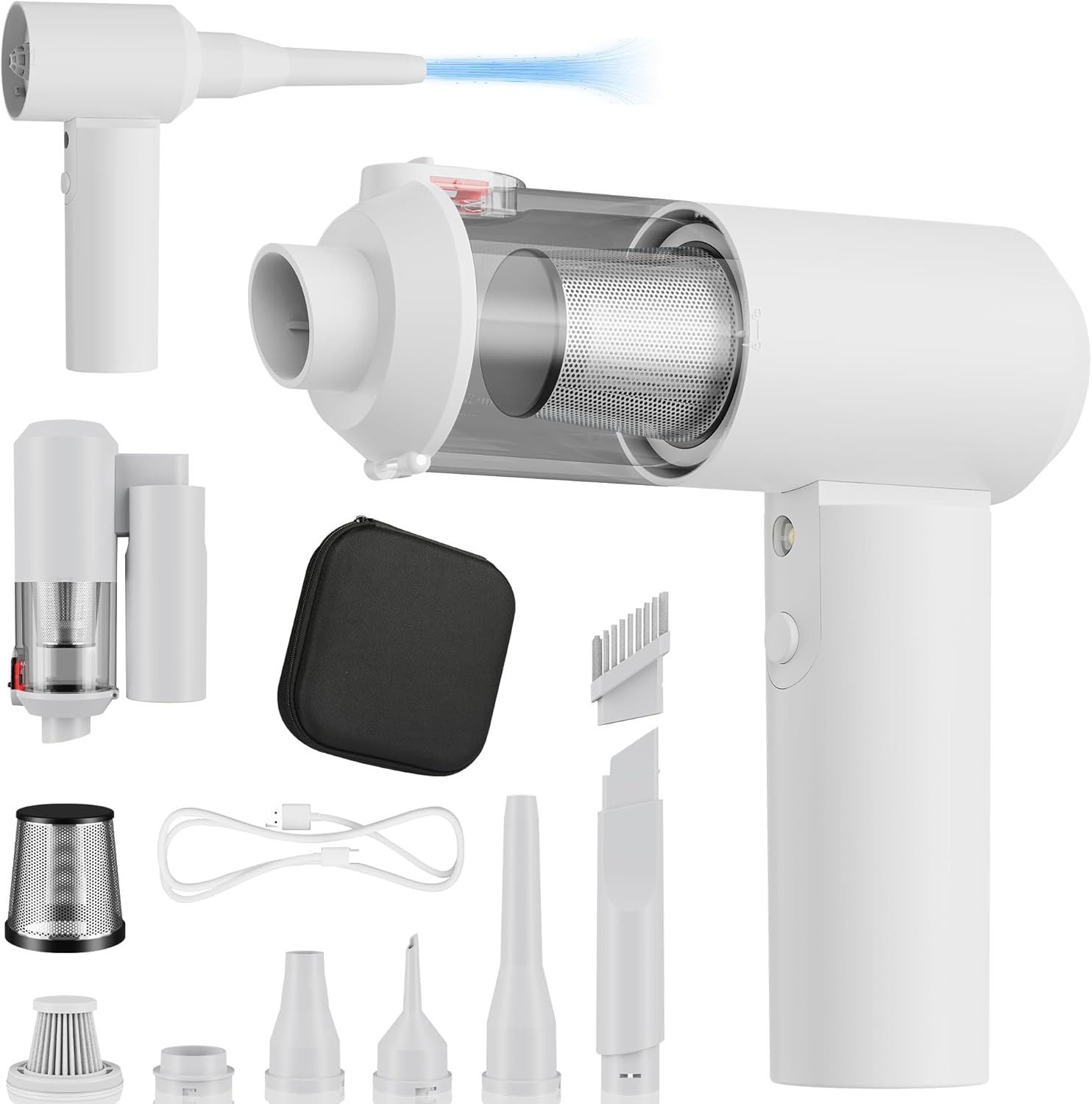 - 【4-in-1 Portable Air Blower/Car Vacuum】This versatile hand vacuum cordless combines vacuuming, blowing, inflating, and pumping functions. Whether you're cleaning hard-to-reach corners of your car, inflating air mattresses, or using the air duster to clean keyboards, this mini vacuum has you covered.