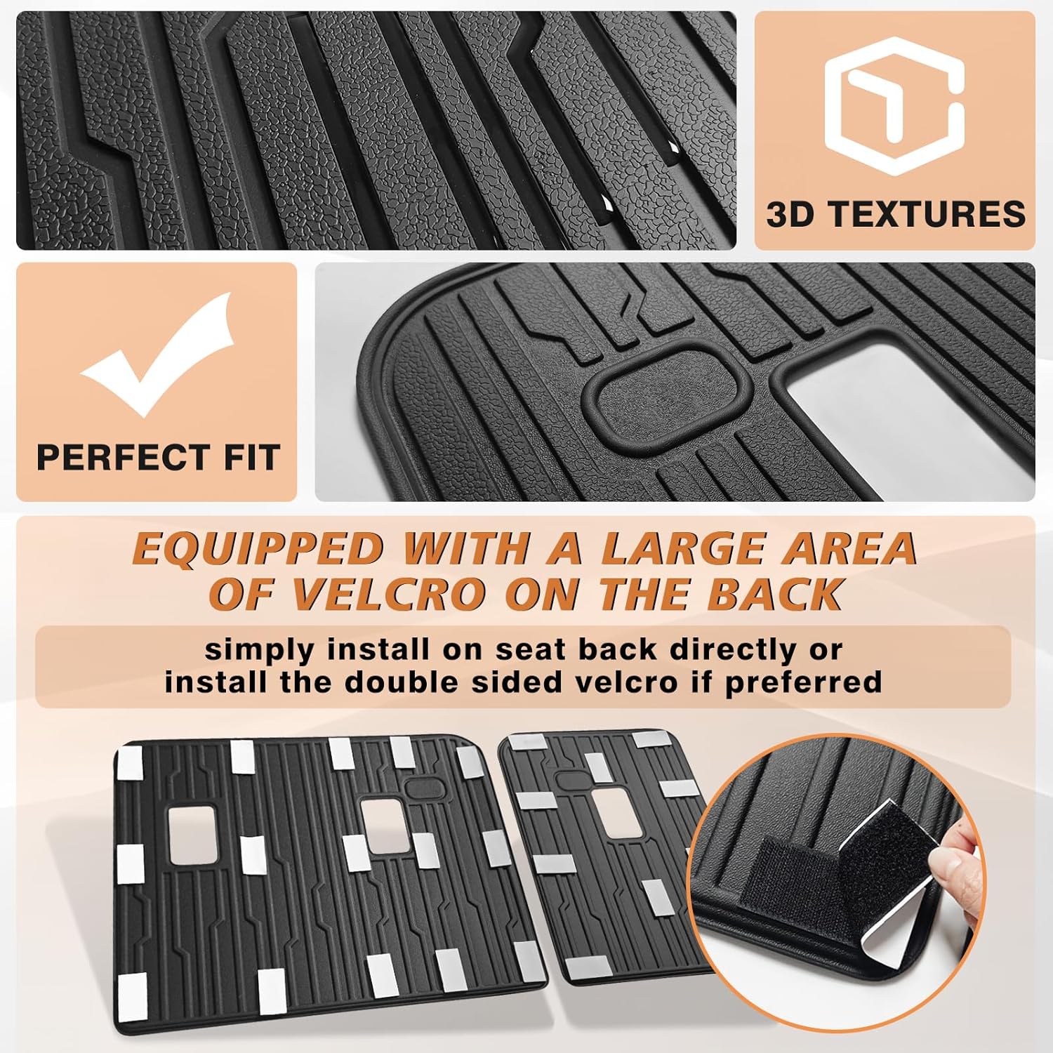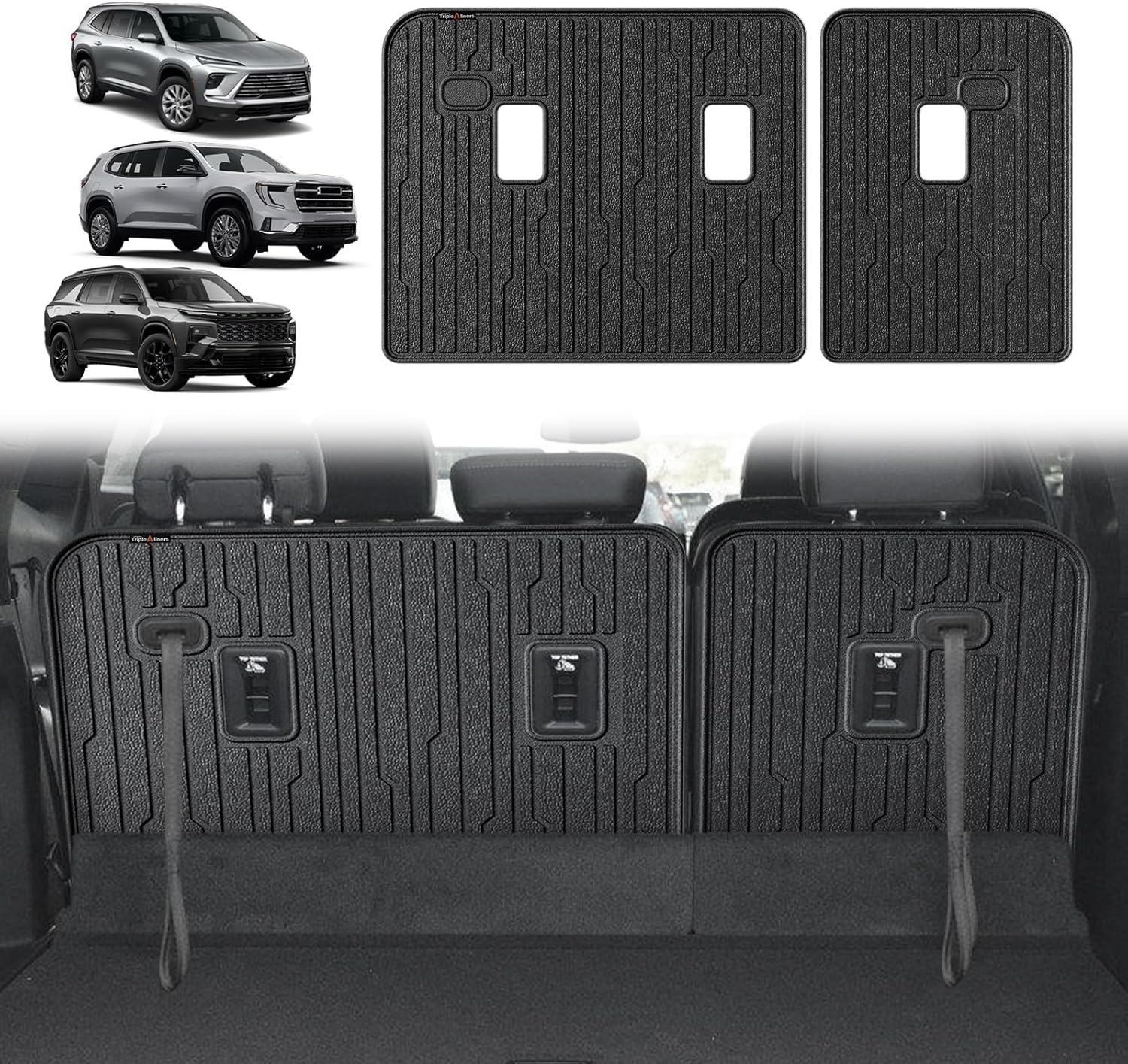 TripleAliners Backrest Mats All Weather Liners Compatible with 2024+ GMC Acadia/Chevy Traverse & 2025 Buick Enclave TPE Third Row Seats Back Cover
