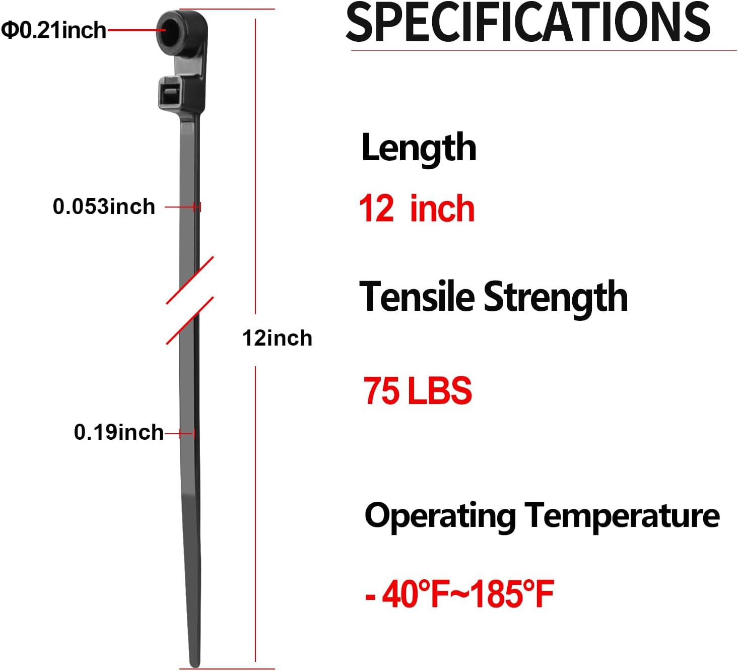 - 【High tensile strength】Pack of 1000 12 Inch Long Black Cable Zip Ties. Heavy Duty Cable Ties with supporting up to 70LB Strong Tensile Strength. 0.2inch Wide