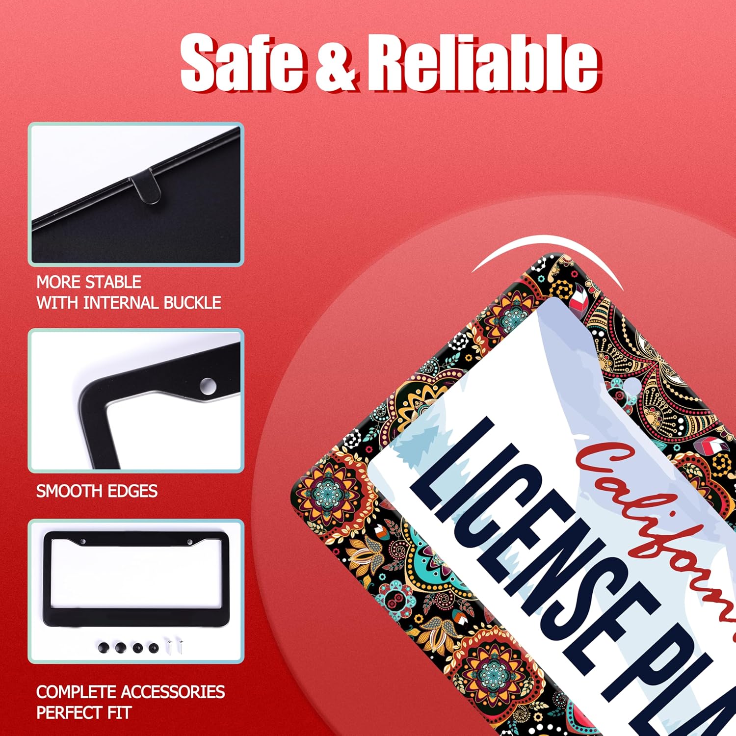 - 【Standard License Plate Size】:Our license plate frame size is 12.2 x 6.3 inches. This license plate frame will fit most of the standard license plates in the United States and Canada, and perfectly match your car license plate accessories.