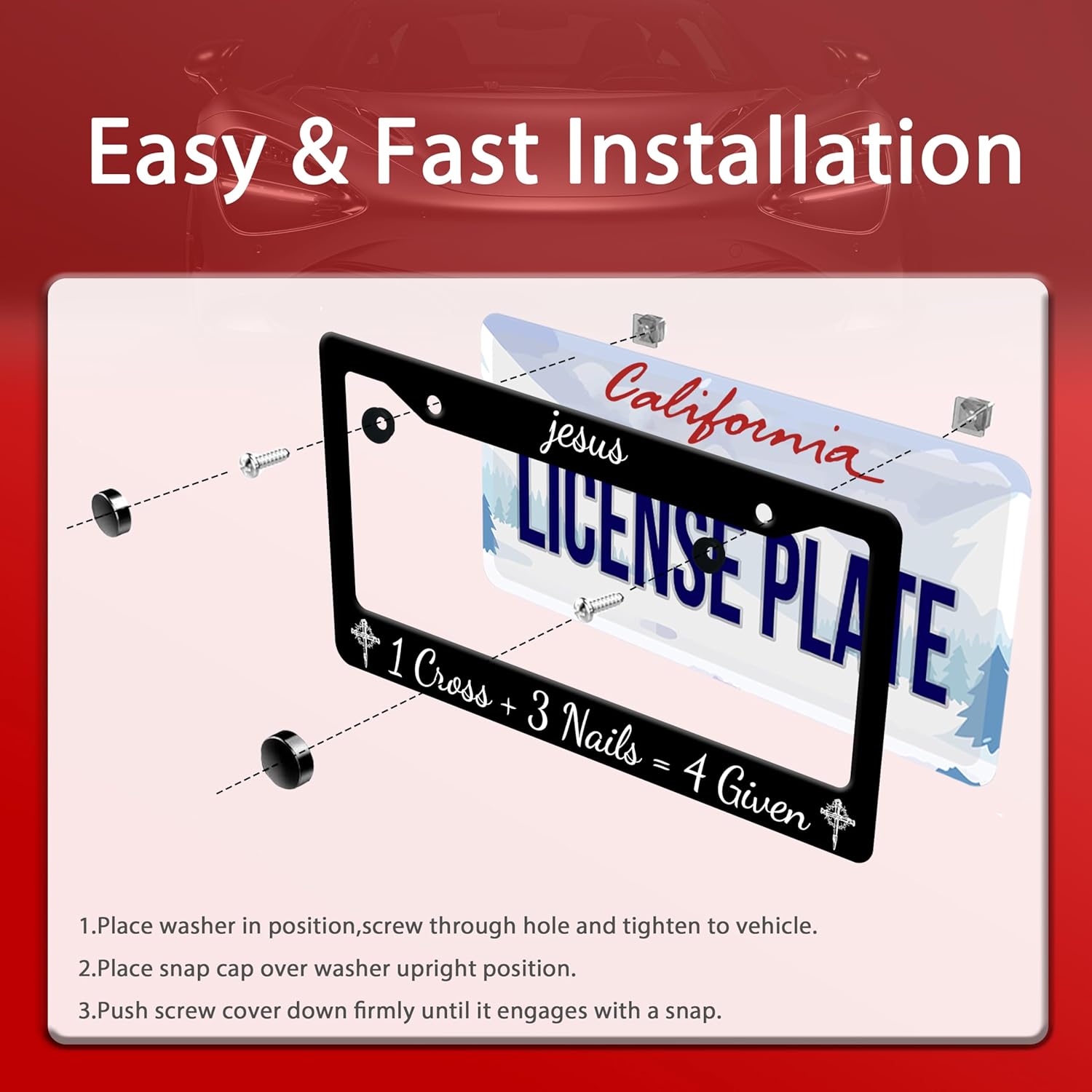 Personalized License Plate Frame Jesus 1 Cross + 3 Nails = 4 Given Stainless Steel Accessory Holder Funny Car Decorative 2 Holes Screws Fits Us Standard License Plates 12.2 X 6.3 in for Men Women