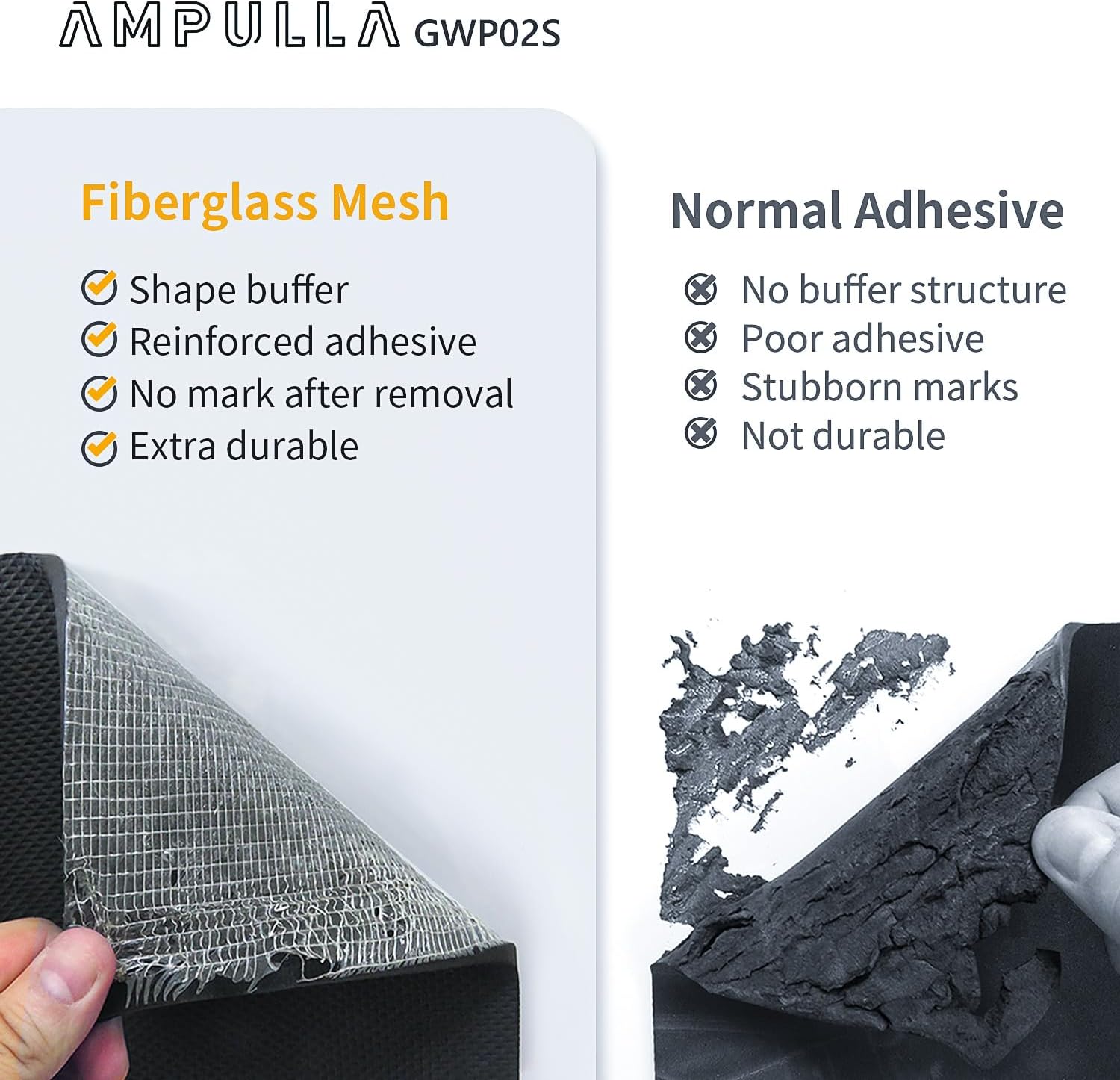 - Fiberglass Mesh Adhesive Structure β The adhesive force is reinforced by its unique integrated back adhesive structure. The interlaced fiberglass allows the wall protectors to be removed without tearing the soft protector or leaving marks on the wall. The non-tearing self-adhesive cover can be peeled off easily.