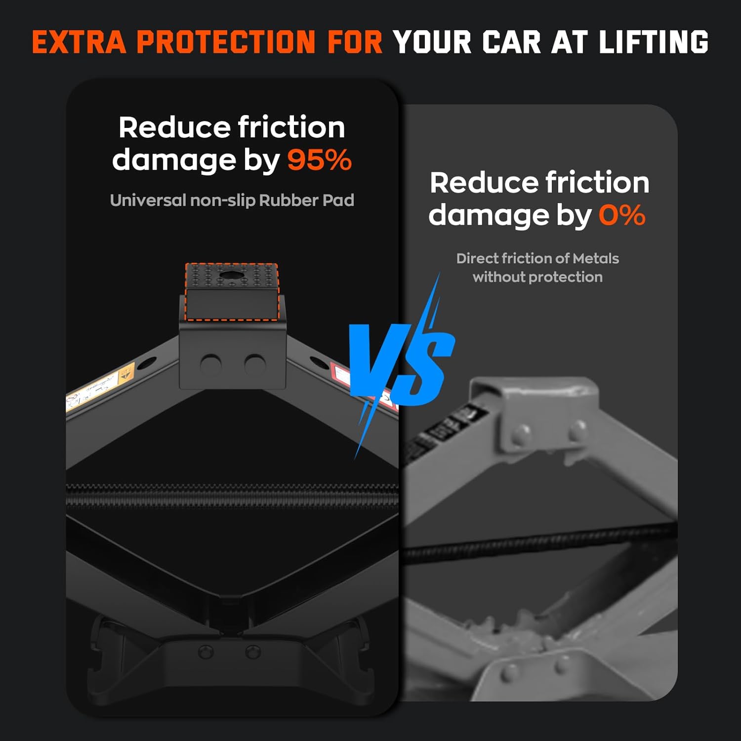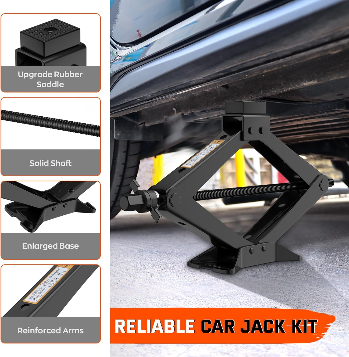 - 【Reliable and Safe】 This Scissor jack is Constructed with high-strength cold-rolled steel and a widened base for increased stability, our jack comes with non-slip rubber on the jack head to protect your vehicle's chassis and ensure optimal safety during lifting.