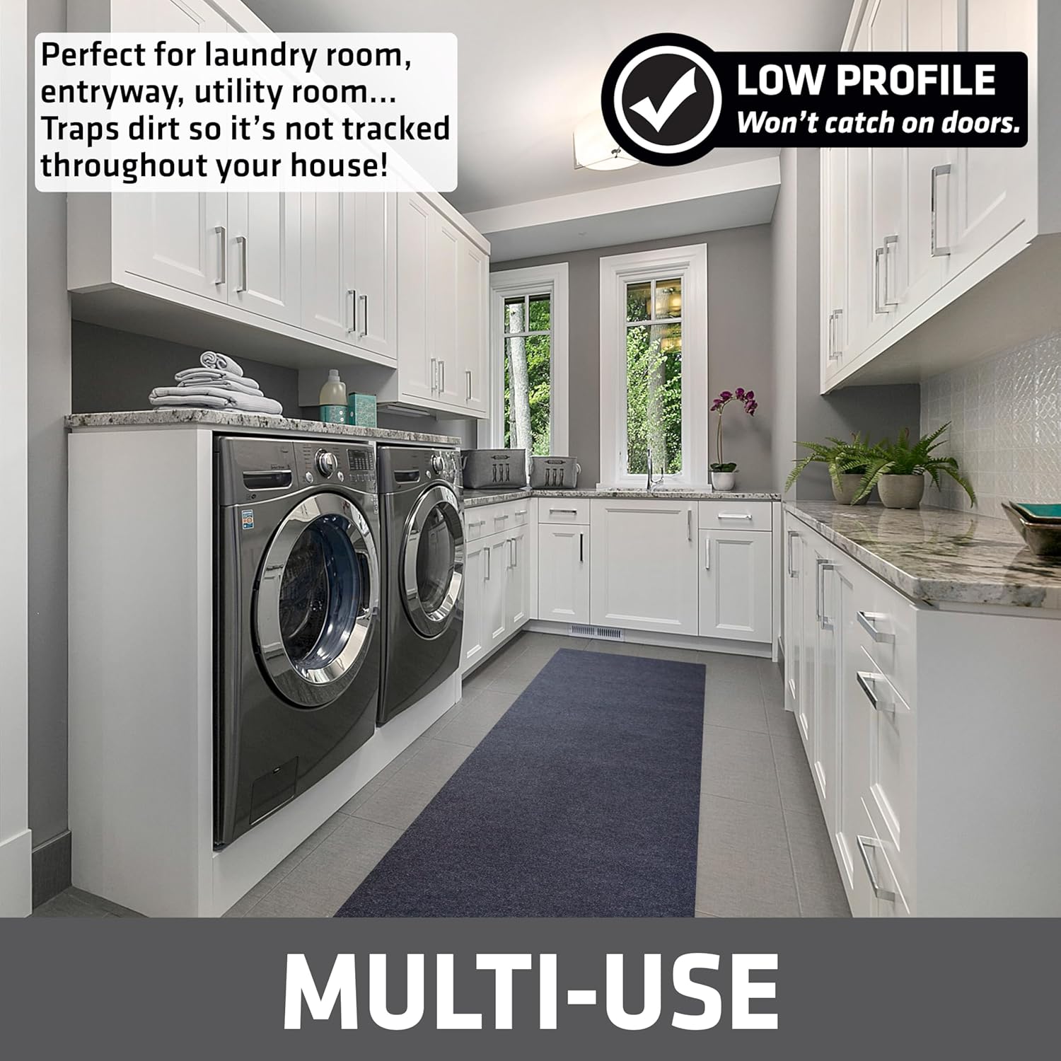 - PROTECTS SURFACES & REDUCES MESS (KEEPS FLOORS LOOKING LIKE NEW): The Drymate Garage Floor Runner is designed to reduce dirt & debris from being tracked around your home while also protecting surfaces from spills, stains, scuffs and scratches. MULTI-PURPOSE: This protective mat has a carpet like look and feel and is soft to walk on. Perfect for creating a clean and dry walking path in your home, garage, or basement.