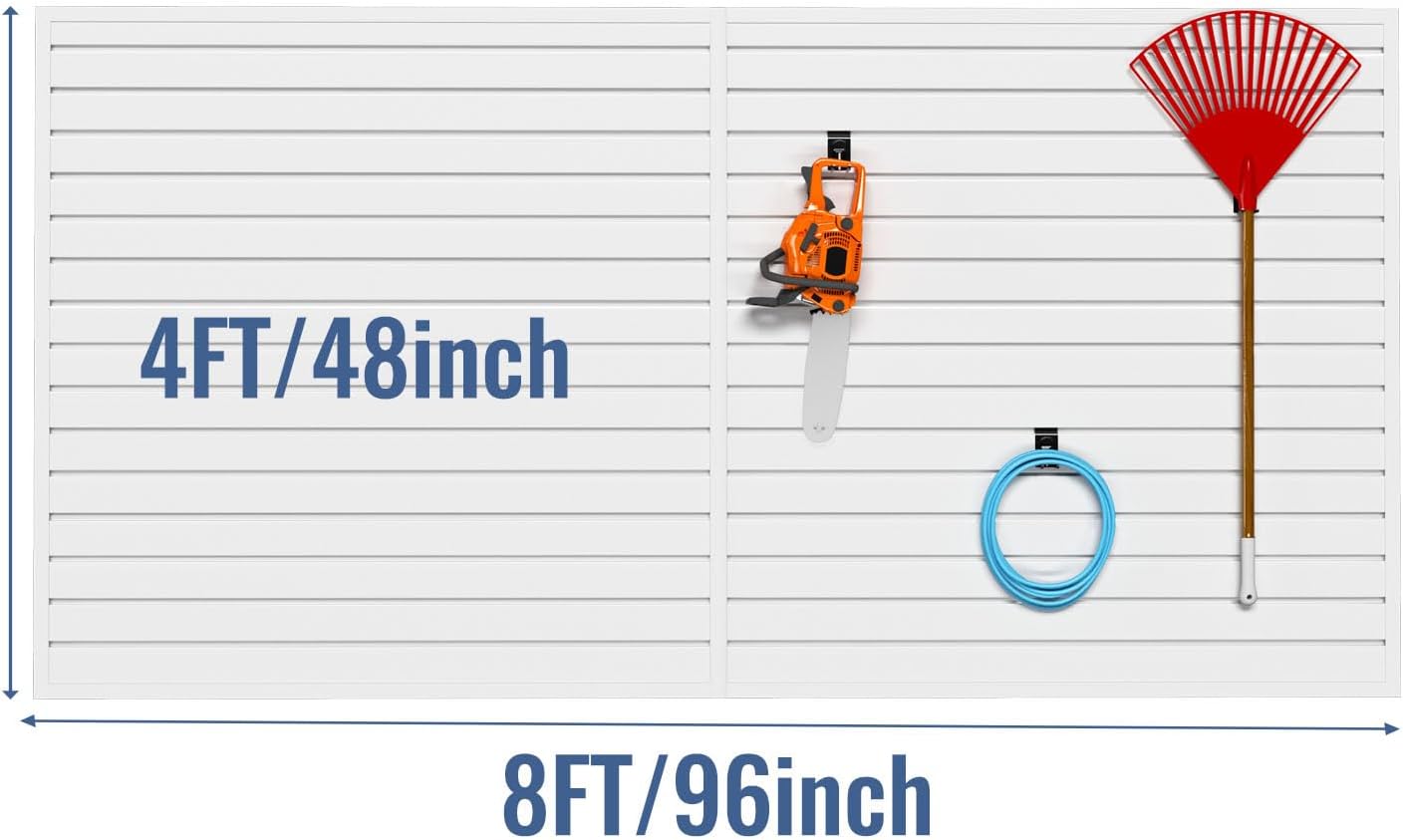 - MAXIMIZE SPACE USAGE: Transform your garage into a sleek, organized haven with our PVC slat wall panel. Efficiently utilize vertical space, creating a clutter-free environment that optimizes every inch.