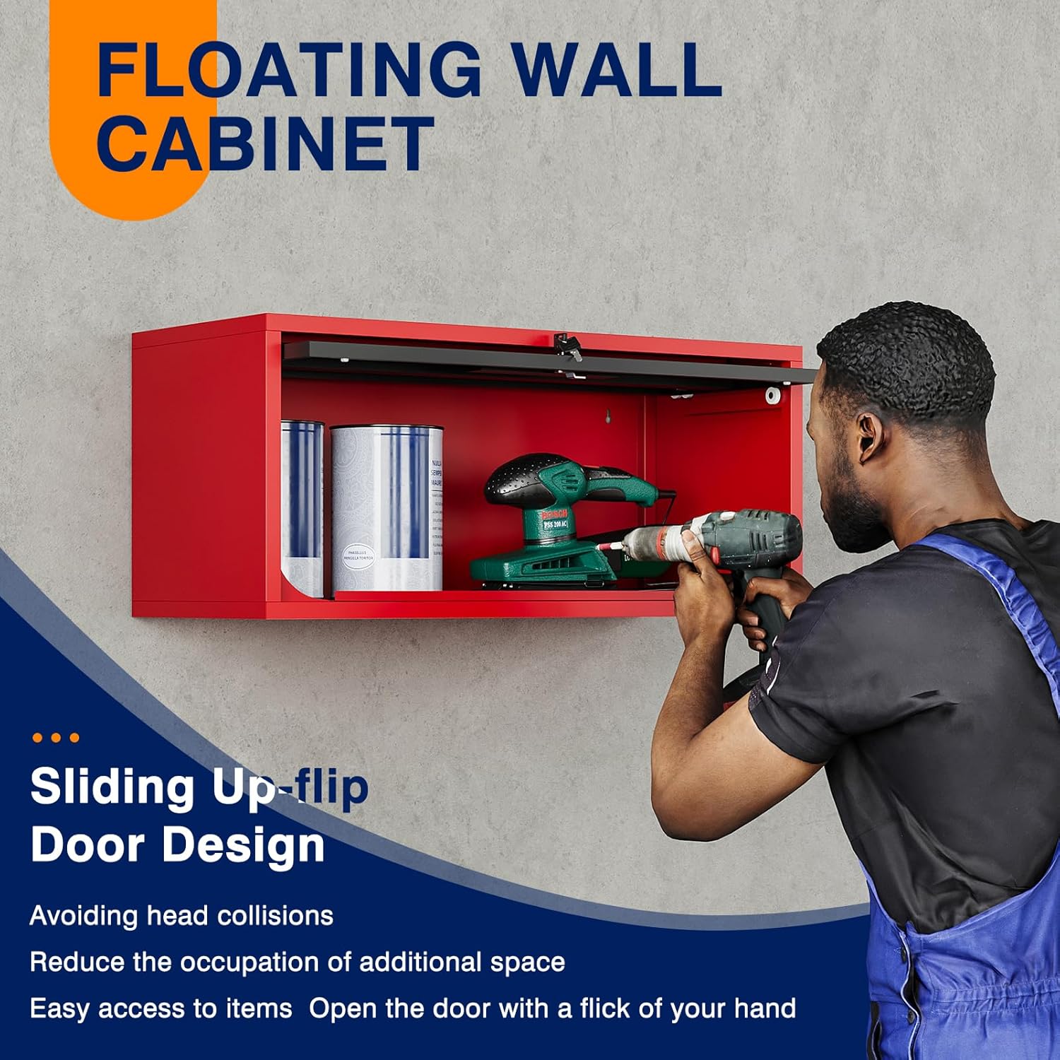 - ăSLIDING Up-Flip DOORă Yizosh wall cabinet features a special opening and closing door design. Sliding Up-Flip door allows you to open the door easily and frees up your hands to access the item in the cabinet more conveniently. The door can slide into the cabinet, which can prevent accidental head-banging