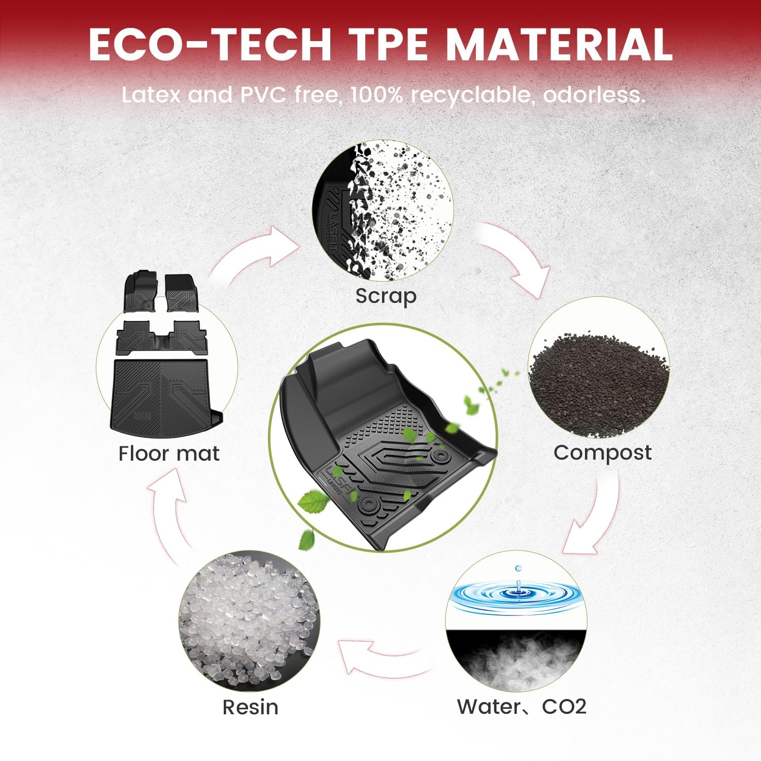 - FIRM YET FLEXIBLE - LASFIT Escape Mats are made of innovative TPE material, allowing our floor liners last long, way more elastic that they won't curl or end up buckling.