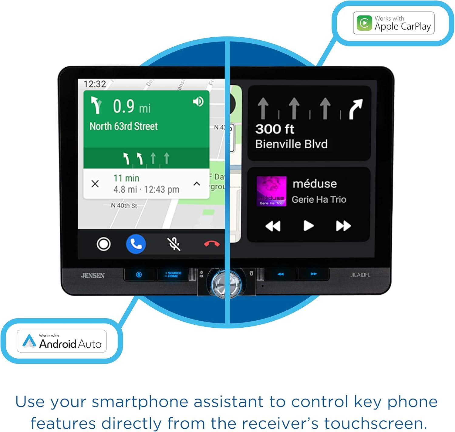 - APPLE CARPLAY – CarPlay is the smarter and safer in-vehicle interface to operate your iPhone, and the experience is taken to another level when featured in the J1CA8FL multimedia receiver. Simply talk to Siri or touch the receiver’s display and get directions from Apple Maps, make phone calls, listen to voicemail, send and receive texts, and listen to music all in a way that allows you to stay focused on the road.