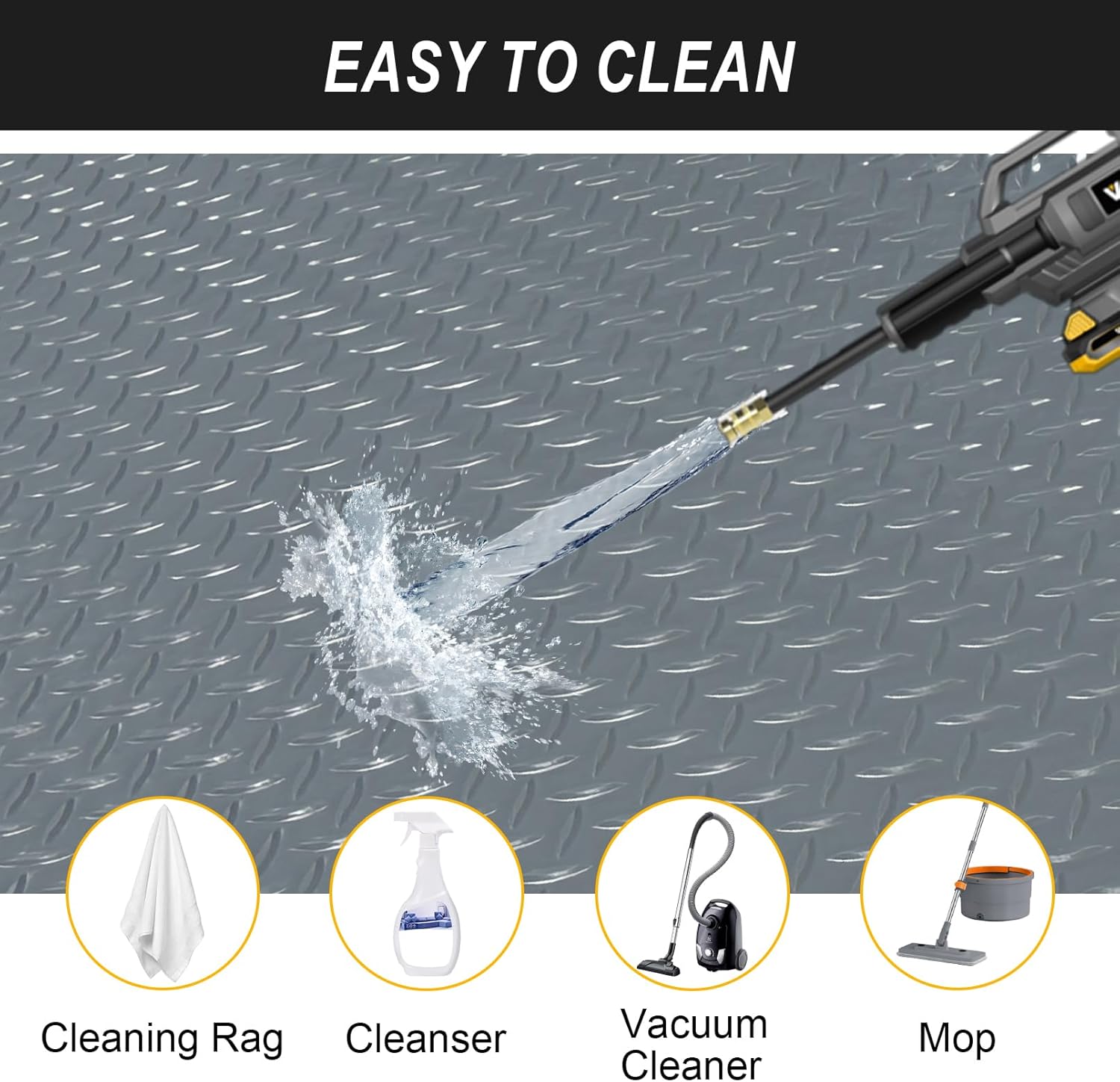 - Anti-Slip Design: The under car mat engineered with a diamond plate texture for superior slip resistance, ensuring safety for both foot traffic and parked vehicles even in damp conditions.In order to make the mat does not slip, you can use double-sided tape on all sides(20 Pcs Tapes Included)