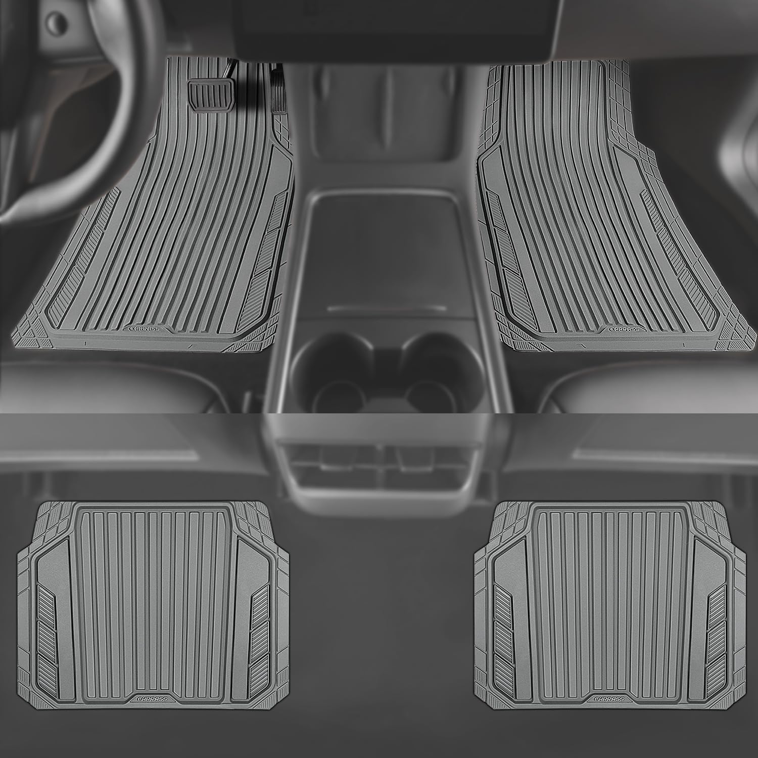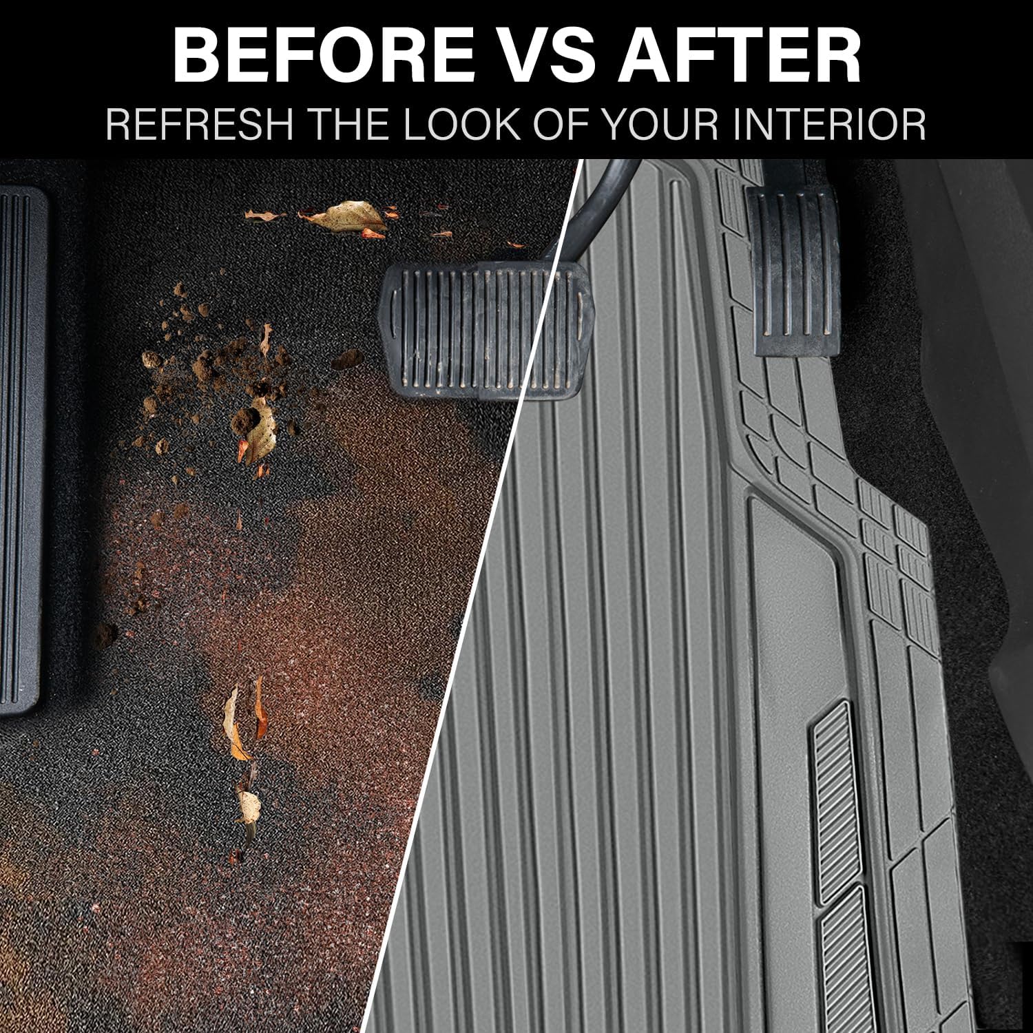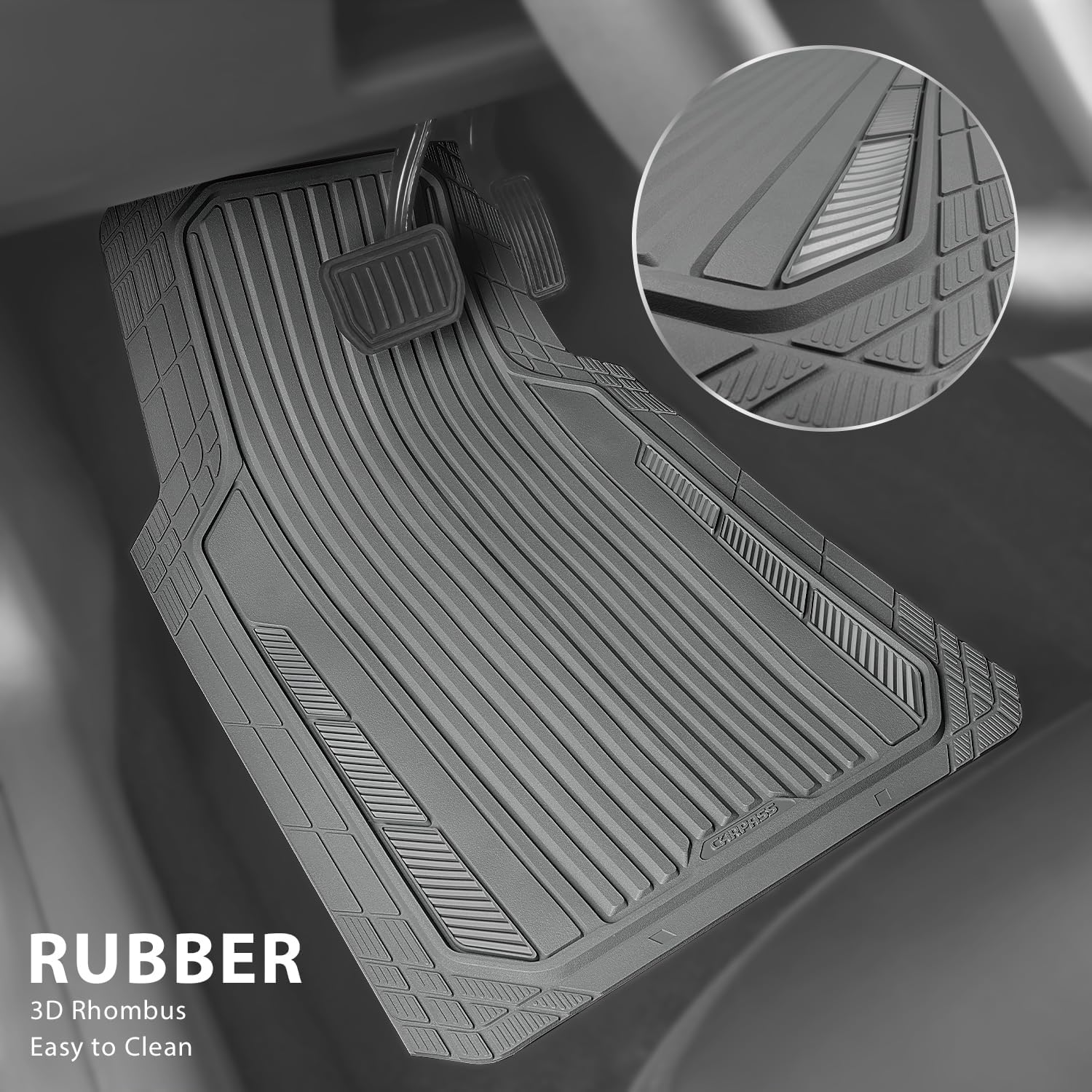- 【All Weather All Season Protection】CAR PASS heavy duty rubber solid gray car mats use for all season.Ridge channels specifically design to prevent fluids from leaking onto carpets,the deep channels also trap any mud, dirt, water or snow that gets in your car.