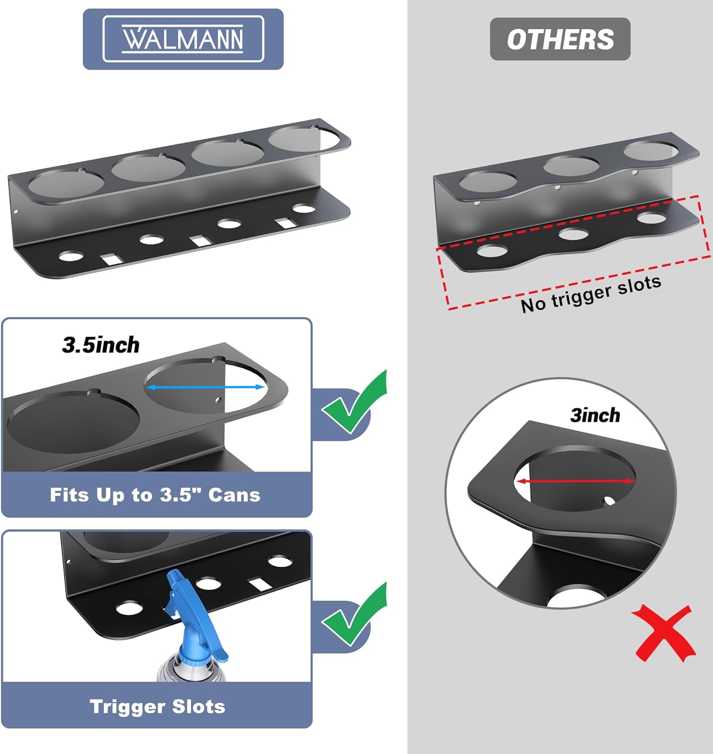 - Wide Compatibility and Smart Design: Holds spray bottles and cans under 3.5 inches in diameter. Includes deep cups, spray trigger slots, and notches for straws like WD-40 for convenient use