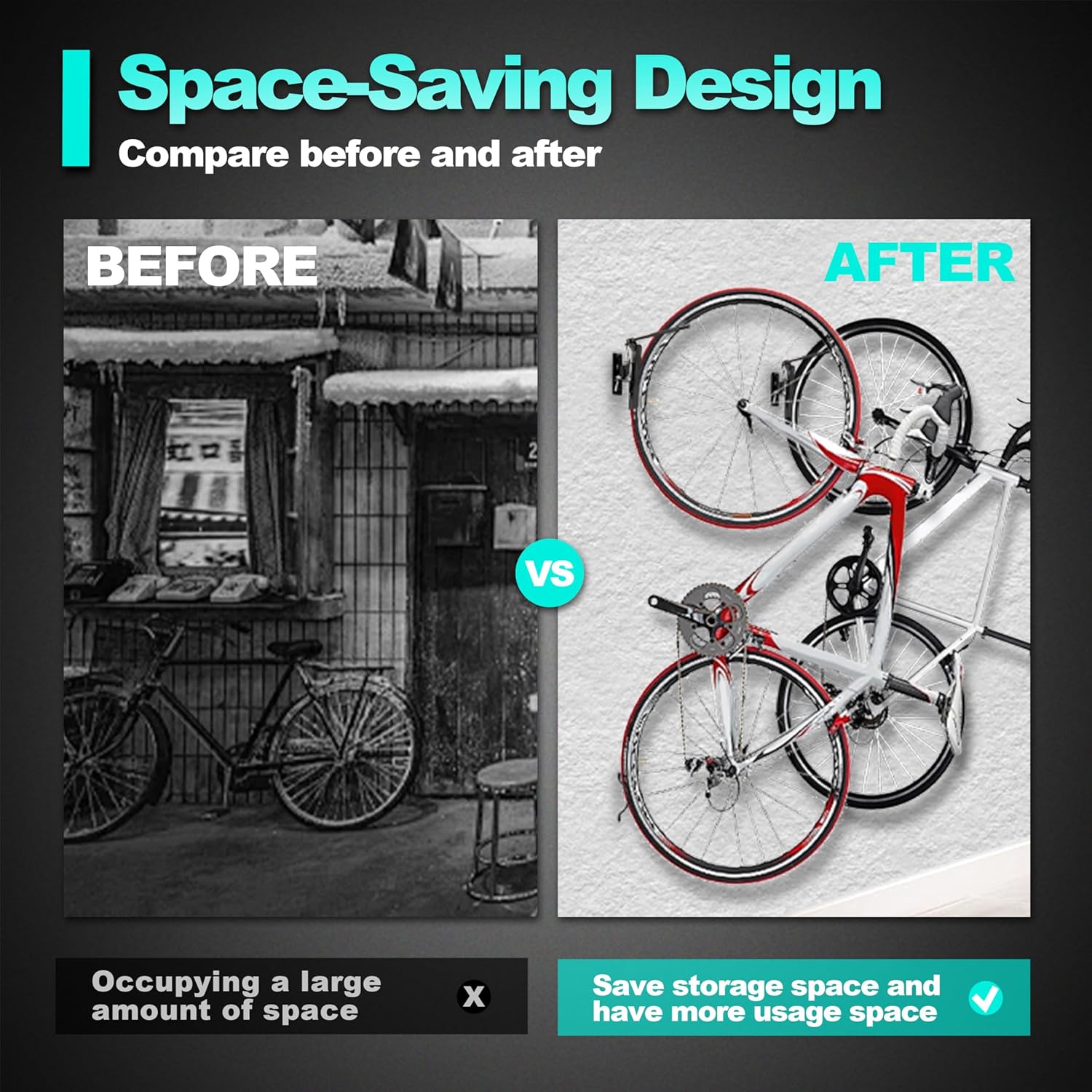 - [Space-Saving Design] The Swivel Bike Rack Garage is expertly designed to maximize your garage or indoor space, allowing you to store your bikes efficiently without sacrificing valuable floor area.