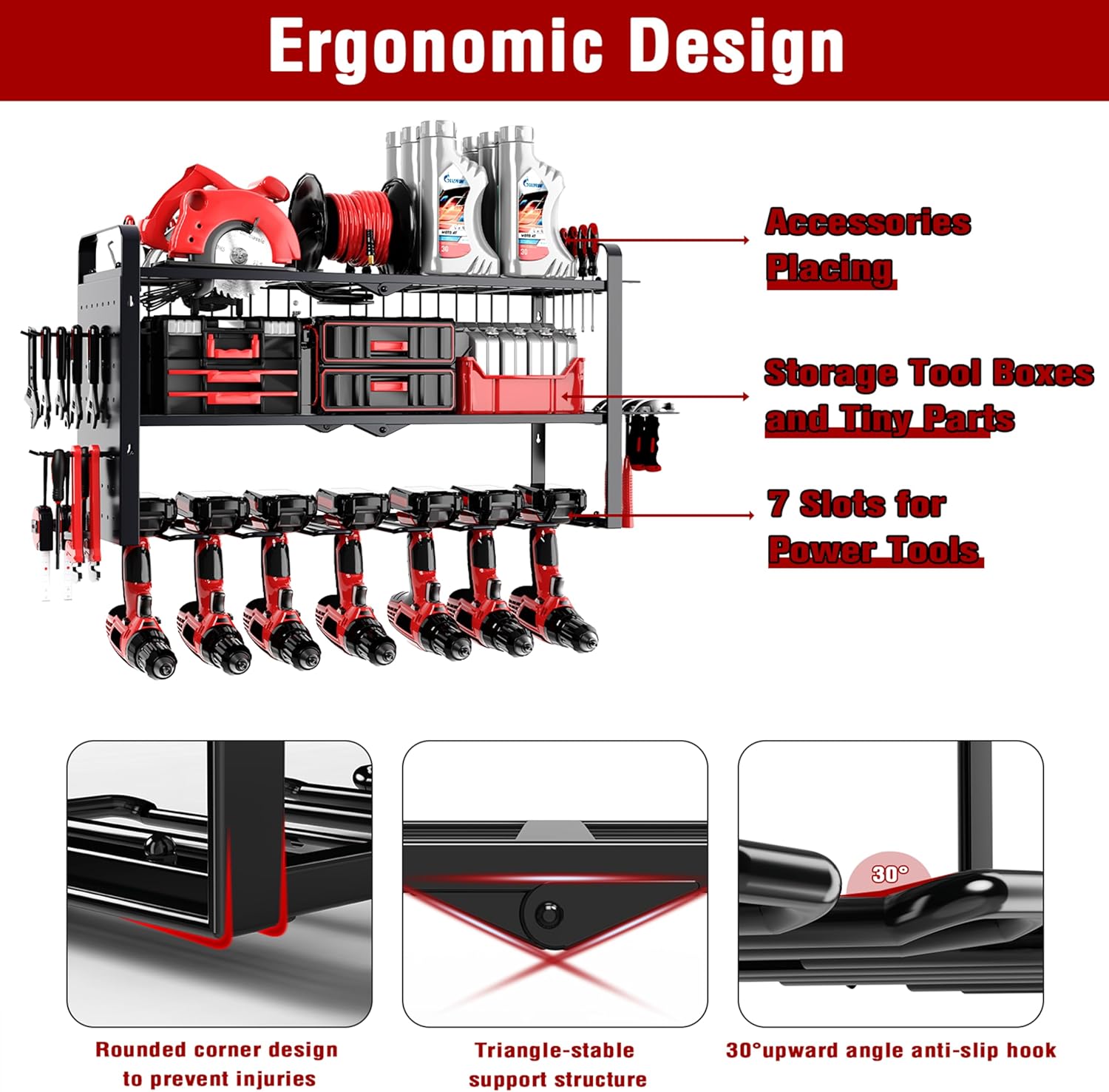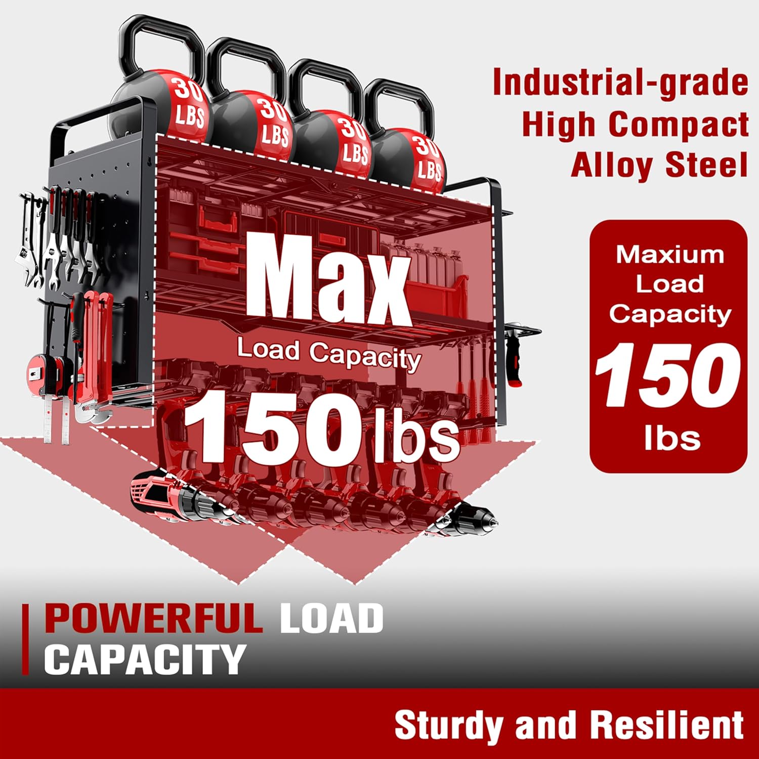 - 【Win the Tested 150Lb Maxium Load】The power tool organizer is made of industrial-grade heavy compact alloy steel for greater weight capacity and durability. Win the tested 100 sets of Toyear tool organizer loading test maxium up to 150lbs tools. Provide you with long lasting use cost-effective experience. Experience the joy of a well-maintained workspace.