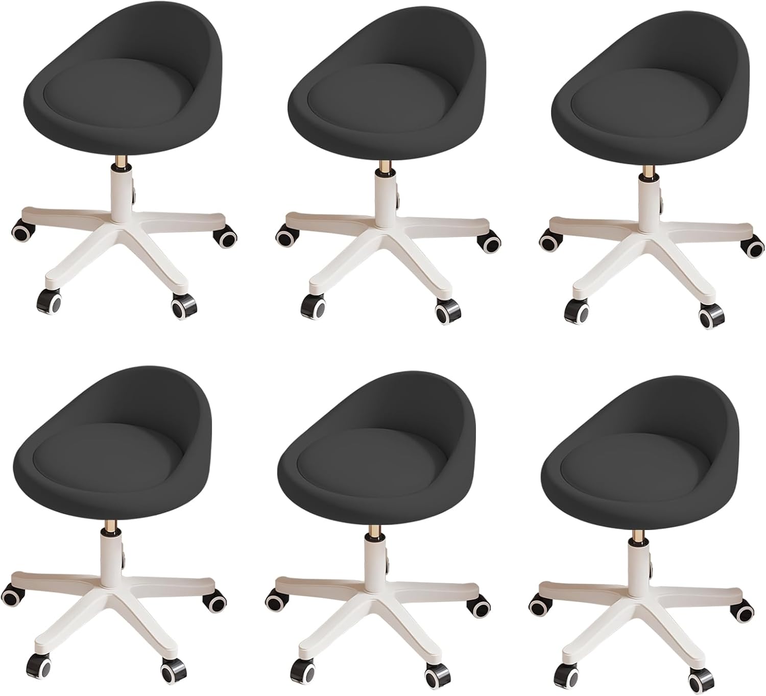 Rolling Stool Set of 6 Rolling Hydraulic Salon Stool with Low Backrest - Adjustable Swivel Chair for SPA, Shop, Salon, Massage, or Medical Office Black