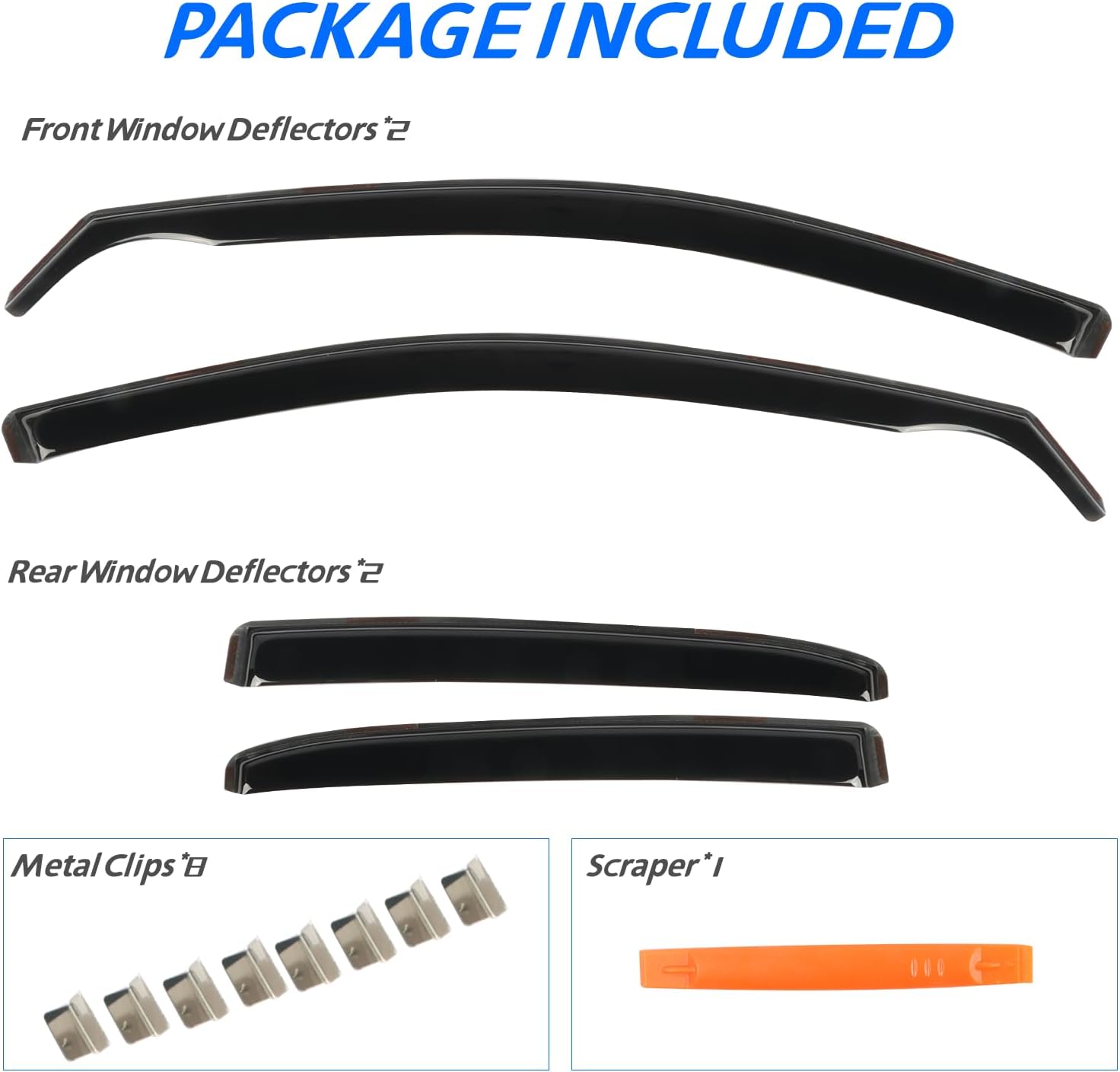 - ăIn Channel Designă CHYKORLA Window vent visors install in the window channel, provides perfect fit and sleek look for your car. No complicated instructions are needed. Attention: Please apply the clip to fix the rain guards