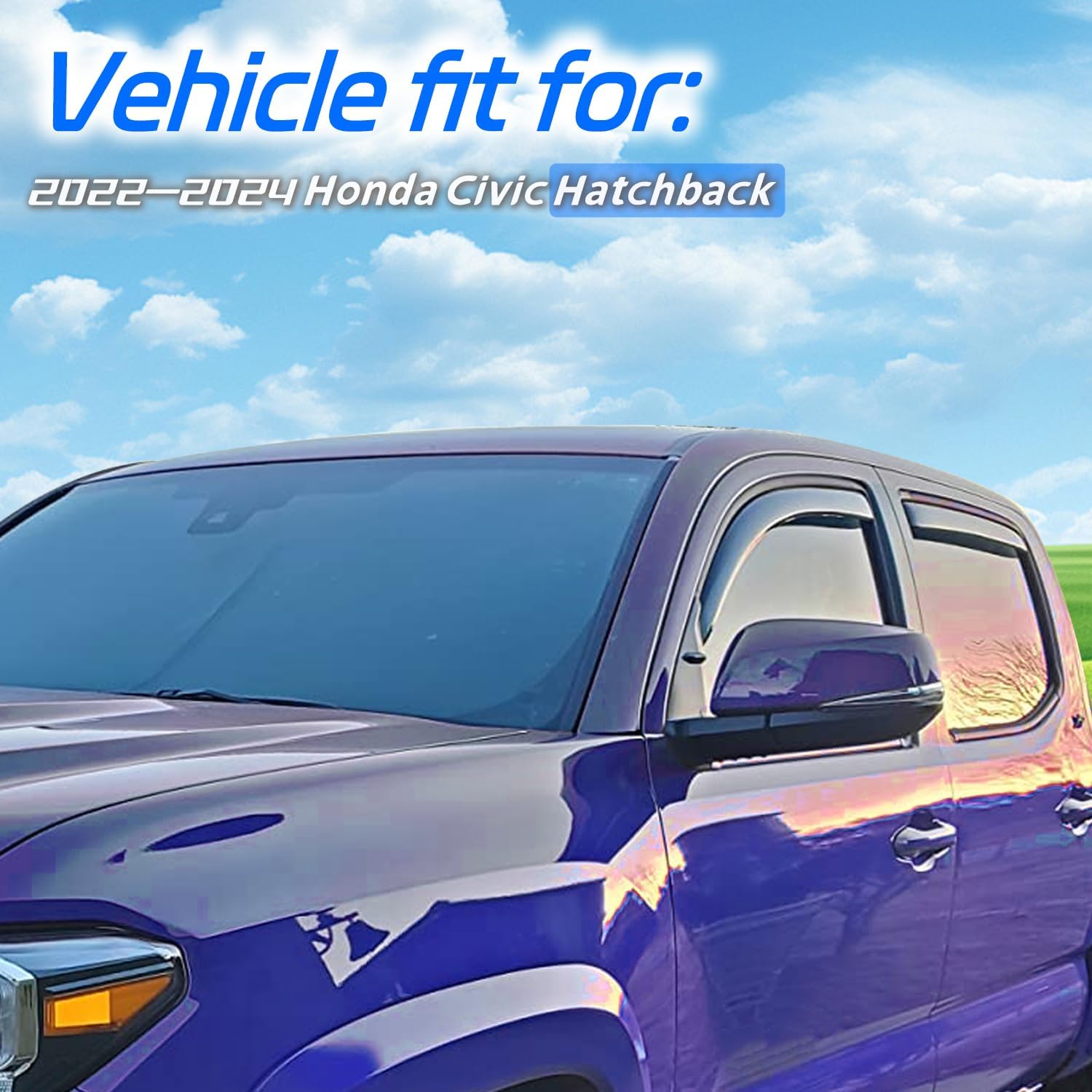 - 【Perfect Fit】Window Rain Guards Shield Vent Visors fit for Honda Civic Hatchback 2022-2024. Please be advised that the visors are vehicle specific. Please check your vehicle's compatibility to ensure proper fitment