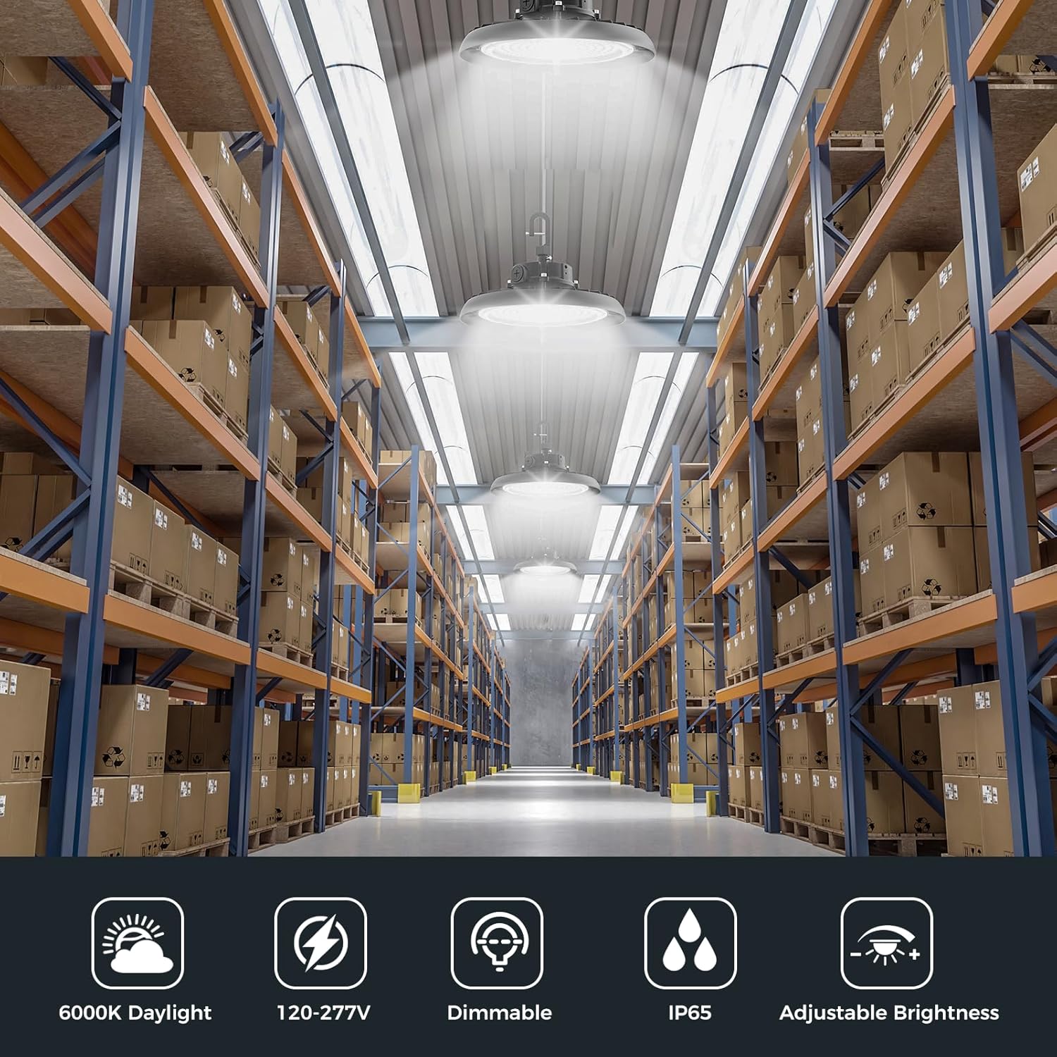 - Wide 120° Beam â Uniform, Shadow-Free Lighting - Equipped with a 120° beam angle, this UFO high bay light ensures wide, even coverage for ceilings 12â16 feet high, lighting areas up to 38 feet wide. Say goodbye to dark spotsâperfect for commercial, industrial, or retail spaces that demand consistent illumination.