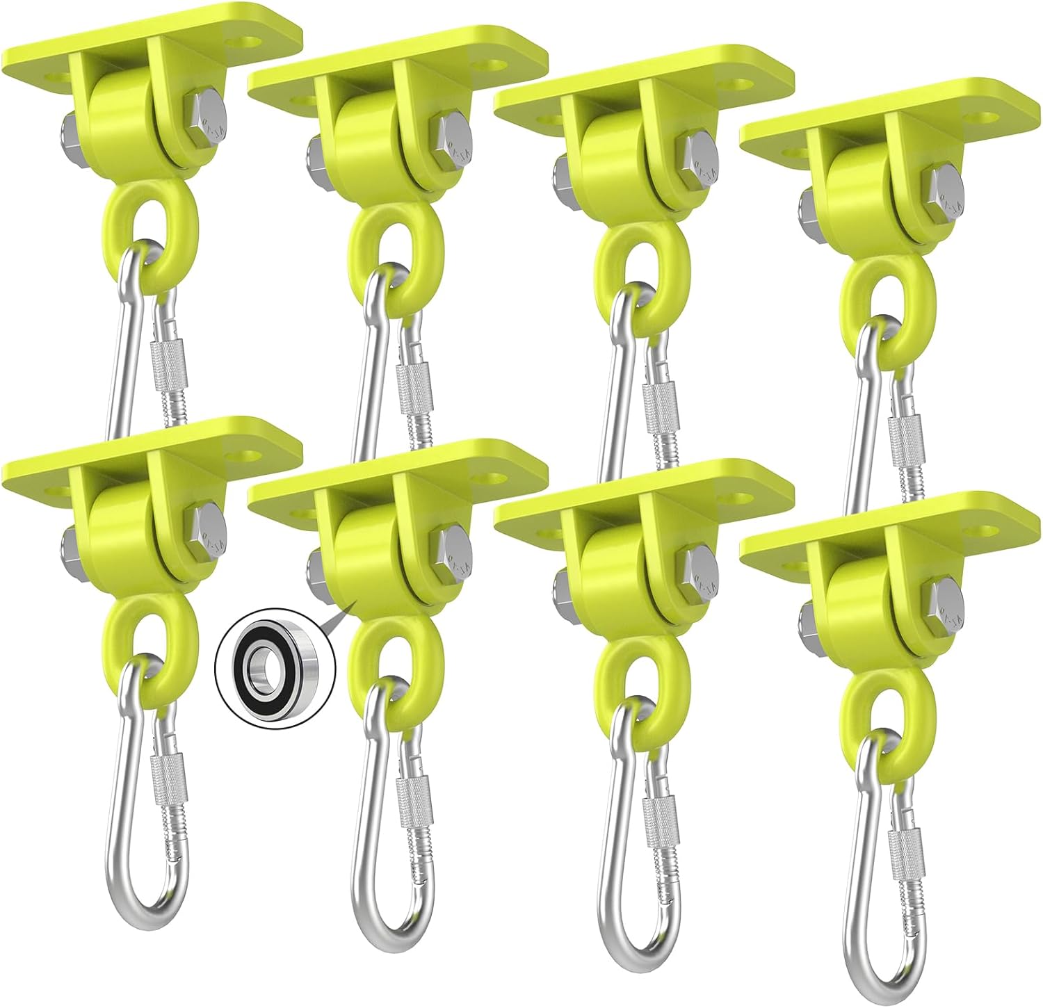 Heavy Duty Swing Hangers, Porch Swing Hanging Kit with Bearing Outdoor Playground Tree Indoor Ceiling Mount Hardware Brackets with Snap Hooks for Yoga Hammock Punching Bag Accessories 8PCS Yellow