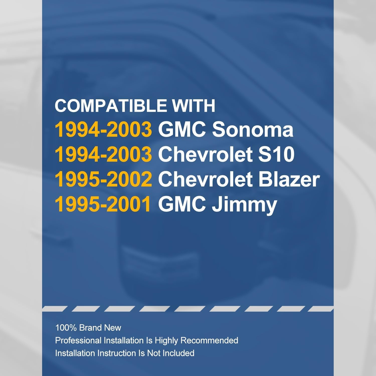 - Material Acrylic : Vehicle Service Type Compatible with Chevy S10 Blazer GMC Sonoma 94-03