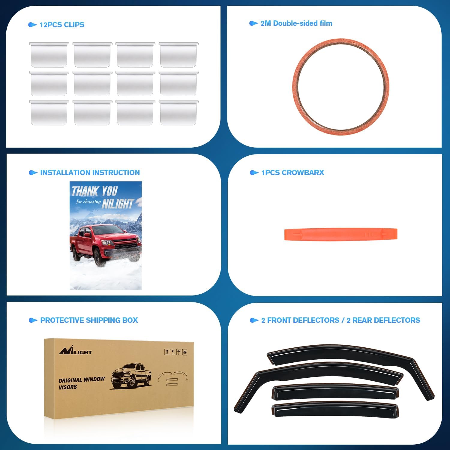 - Advantage:Nilight window deflectors are great for all weather conditions,help improve ventilation inside and outside your car to reduce mirror and window fogging while increasing air circulation.With our side window deflectors, it deflects the rain and noise away from your windows to make your driving more enjoyable