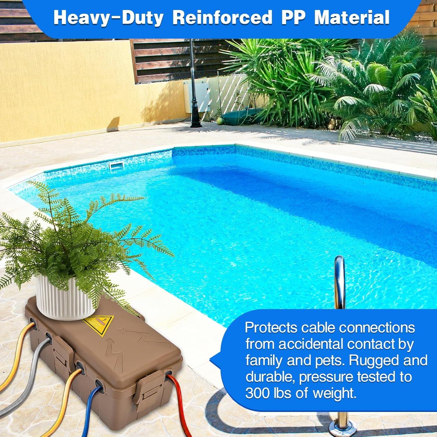- LUMINOUS SAFETY WARNING LABEL: the lid of the outdoor electrical box has a luminous warning label that glows at night to prevent accidentally touching it, ensuring the safety of your family and pets.