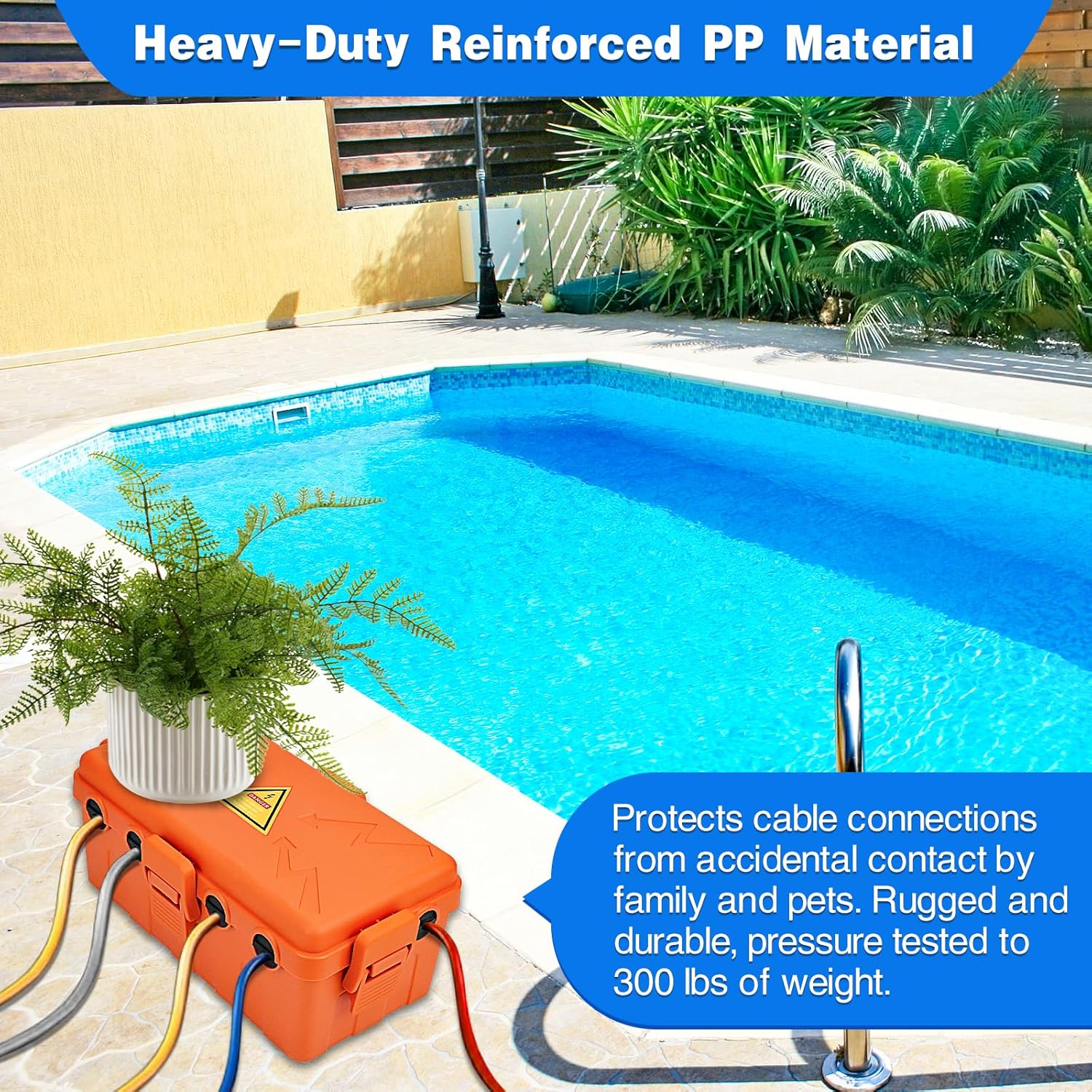 - LUMINOUS SAFETY WARNING LABEL: the lid of the outdoor electrical box has a luminous warning label that glows at night to prevent accidentally touching it, ensuring the safety of your family and pets.
