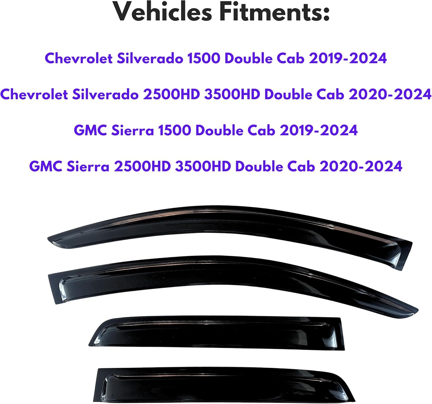 - 【Perfect Fit】KPY window visors rain guards vent deflectors compatible with 2019-2024 Chevrolet Silverado & GMC Sierra 1500 Extended/Double Cab, window vent shade shileld for 2020-2024 Chevy Silverado & GMC Sierra 2500HD 3500HD Extended/Double Cab.