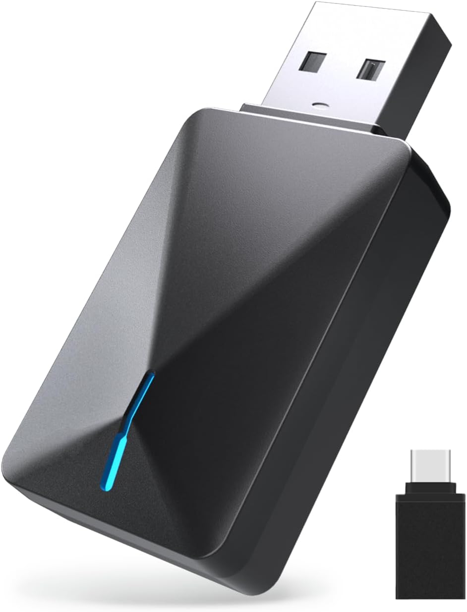 - đăCompact and fashionableă : This wireless apple carplay adopts an upgraded lightweight and fashionable design scheme, reducing the volume by 50%, with a fashionable appearance and convenient portability, which will not take up too much space in the car, and the wireless design keeps the car clean at all times. Our wireless car player includes a USB and USB-C converter, dual port design, so can support both USB and Type-C car port access, suitable for all use scenes.