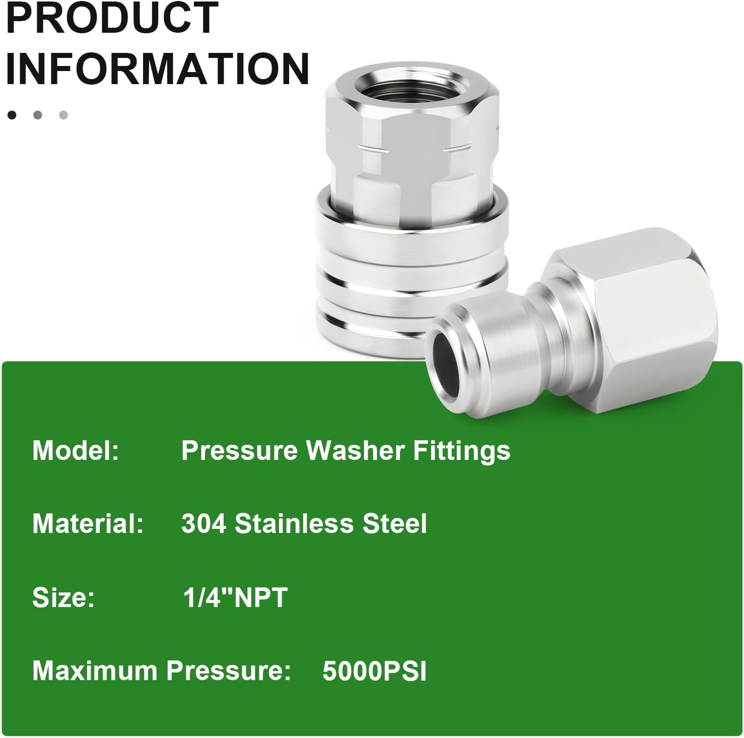 TAISHER 12PCS 304 Stainless Steel Pressure Washer Adapter Kit, Quick Connect Fittings,1/4" Female