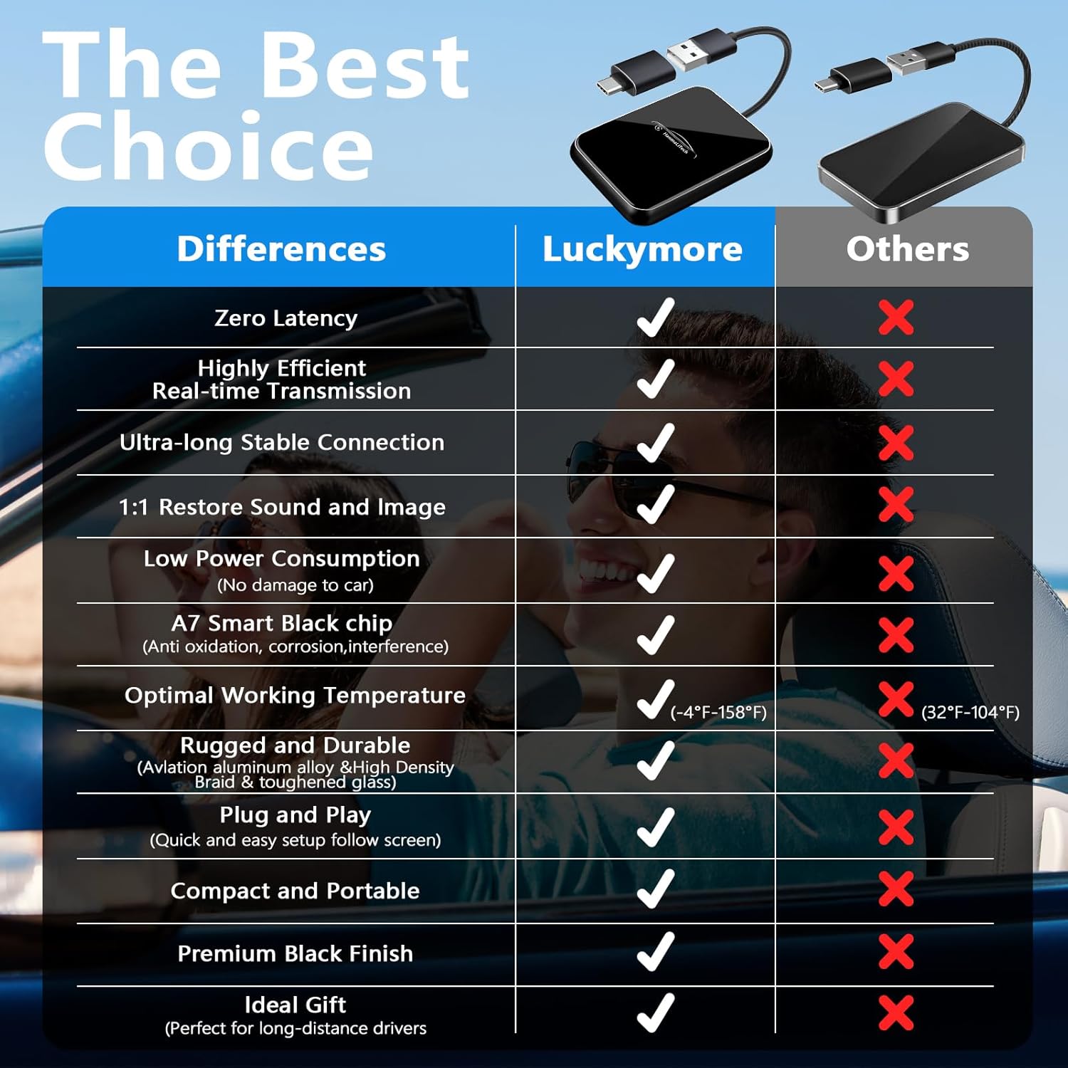 - [Worry-free Service] Provide CarPlay wireless adapter to provide remote firmware updates for seamless functionality. If you have any questions during use, please feel free to contact us for help. We will do our best to serve you.
