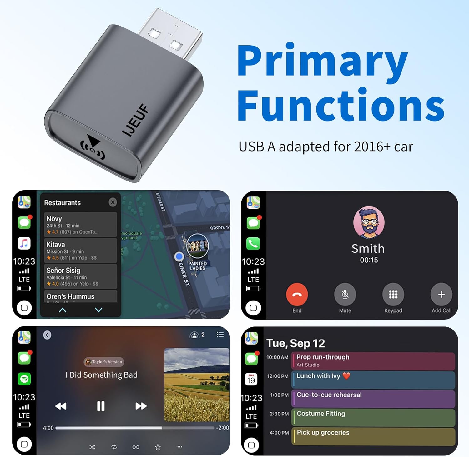 - 🚘【Stable Plug-and-Play Design】 No more cable failures! This wireless CarPlay adapter for iPhone uses a durable no-cable structure to prevent disconnections on bumpy roads. Upgrade Dual-chips ensure instant pairing whether your phone is in pockets, bags, or outside the vehicle (up to 10m)