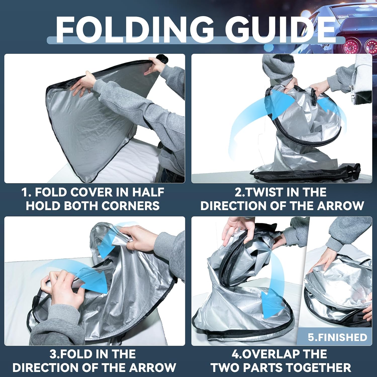 - ăUV ProtectionăThe foldable windshield sun shade is made of high quality polyethylene (HDPE) microfiber,Silver reflective surface can reflect 99% of ultraviolet rays--great sun reflector.blocks heat & sun. Keeps your car cool.