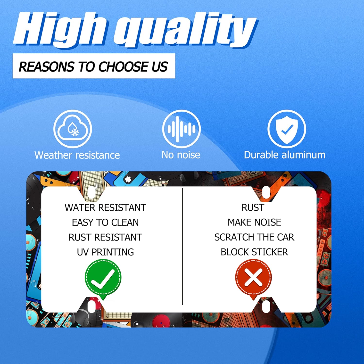 Music License Plate Frame Retro Music Cassettes License Plate Stainless Steel Funny License Plate Holder Men Women Colorful Music Car Accessory Decoration 12.3" x 6.3"
