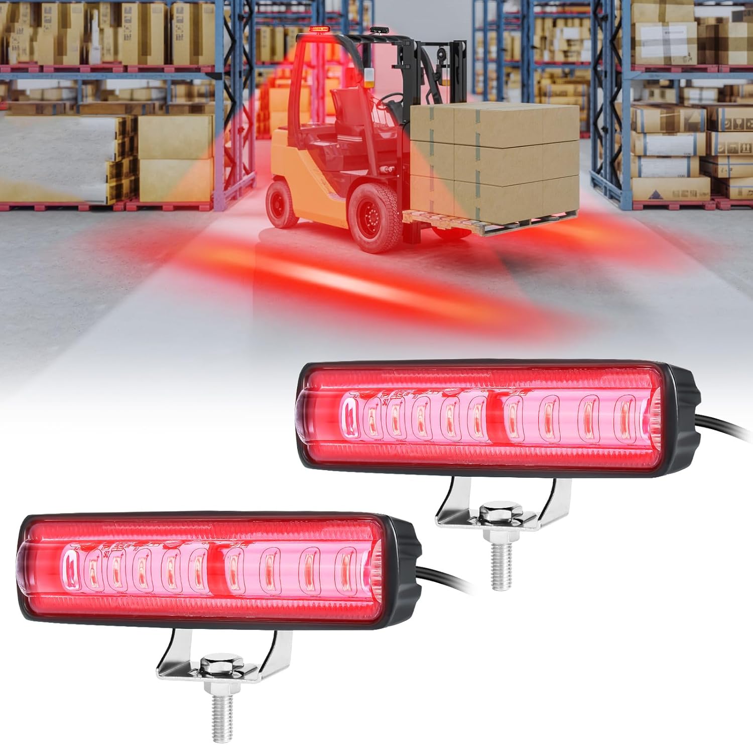 - The Forklift Warning Light is an essential safety device for warehouse and factory environments, Offering clear LED signals to prevent accidents. With a strong output of 1280LM from 9 high-quality 3570LED beads, it ensures visibility at all times.