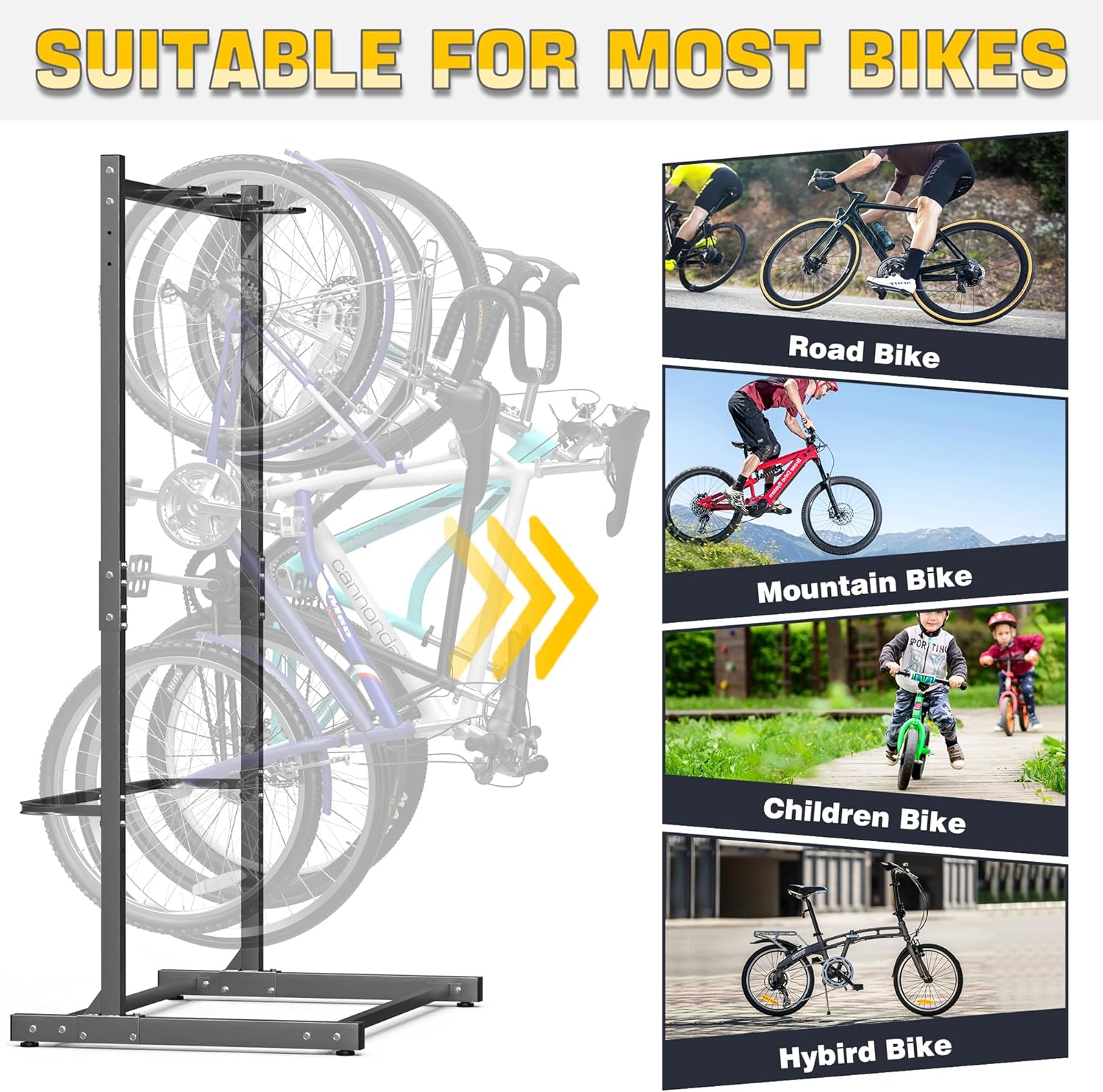 - WIDE APPLICABILITY: Suitable for all types of bikes—adult, kids’, mountain, road bikes—and perfect for home garages, sheds, or any space with limited room