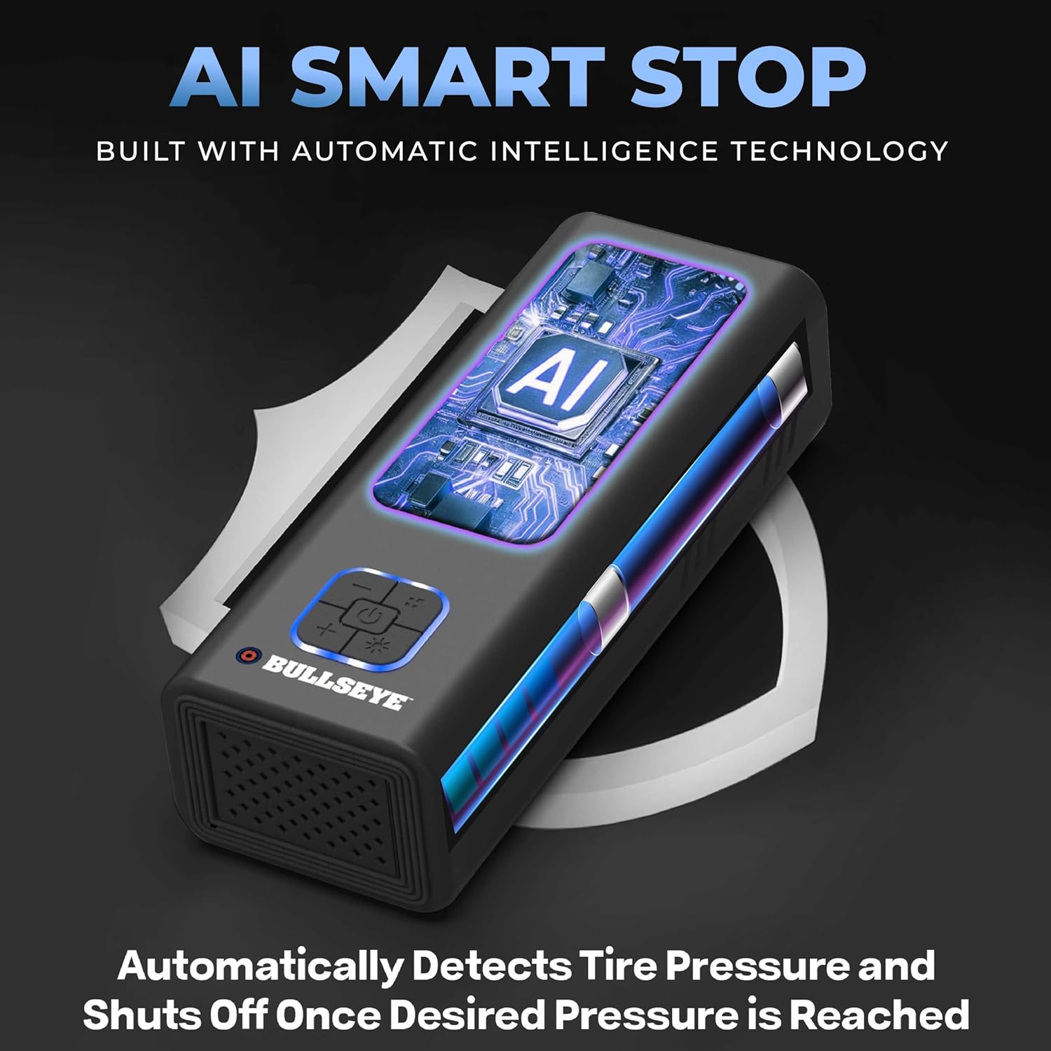 - EASY TO READ GAUGE: Never worry about over-inflation again! The Pocket Air Bullseye Pro Tire Inflator features a built-in digital pressure gauge, letting you set your desired pressure level. Its smart auto-shutoff function ensures the tire inflator stops once the preset pressure is reached, preventing tire damage and ensuring precise inflation. This Pocket Air Pump air inflator for car tires makes operation easy and hassle-free.