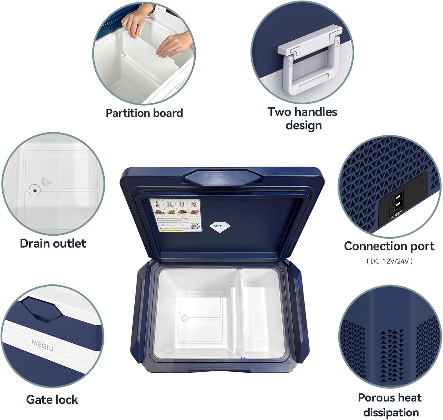 - Advanced Battery Protection – Features three-level battery protection (Low, Medium, High) to prevent car battery drain, ensuring safe operation on long drives with this car refrigerator.