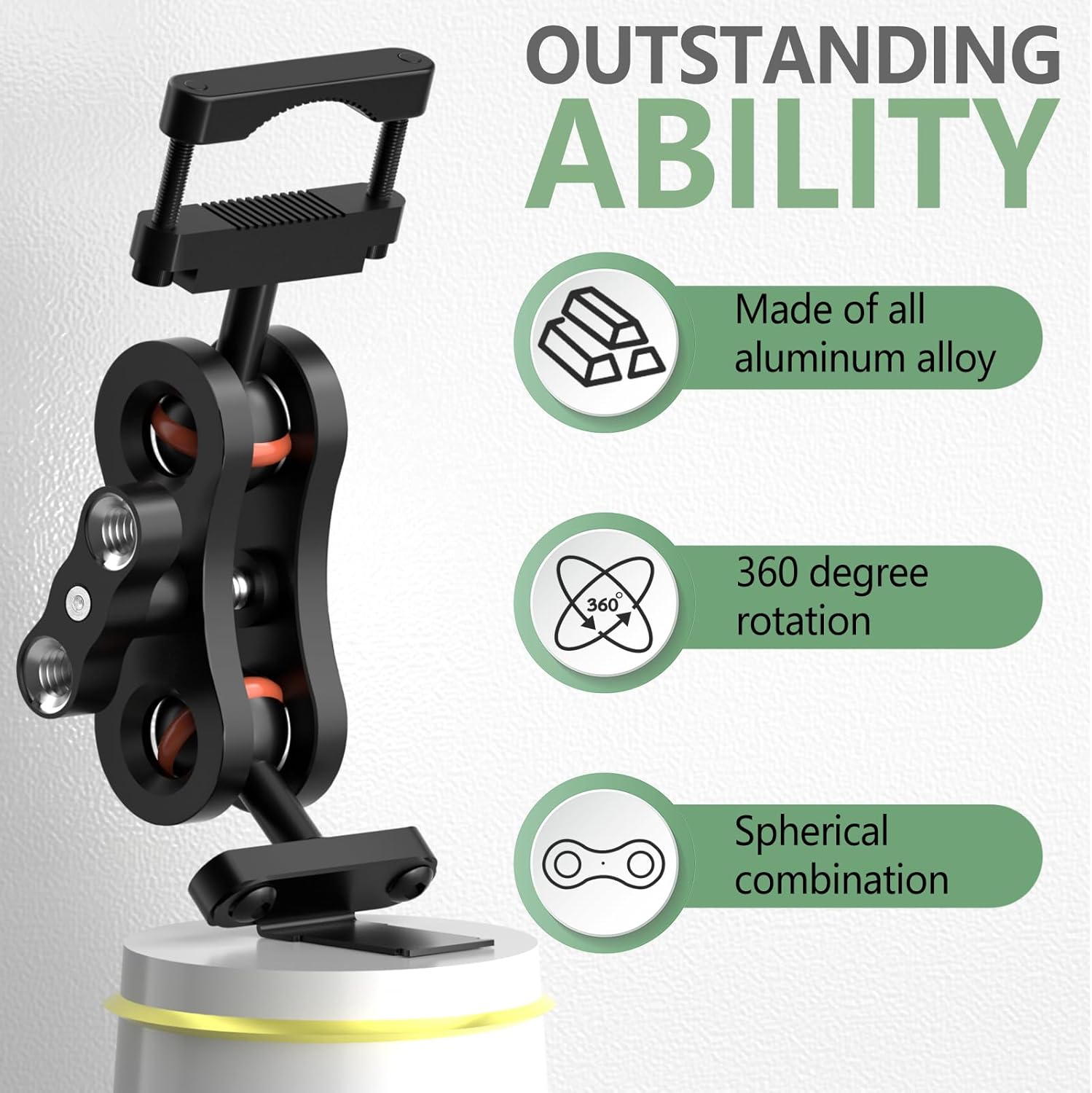- Aluminum rearview mirror bracket has strong expandability, with two 1/4 screw holes at the handle that can be used to expand other devices.360 °rotating ball head design, flexible adjustment, ensuring the best viewing angle while driving.
